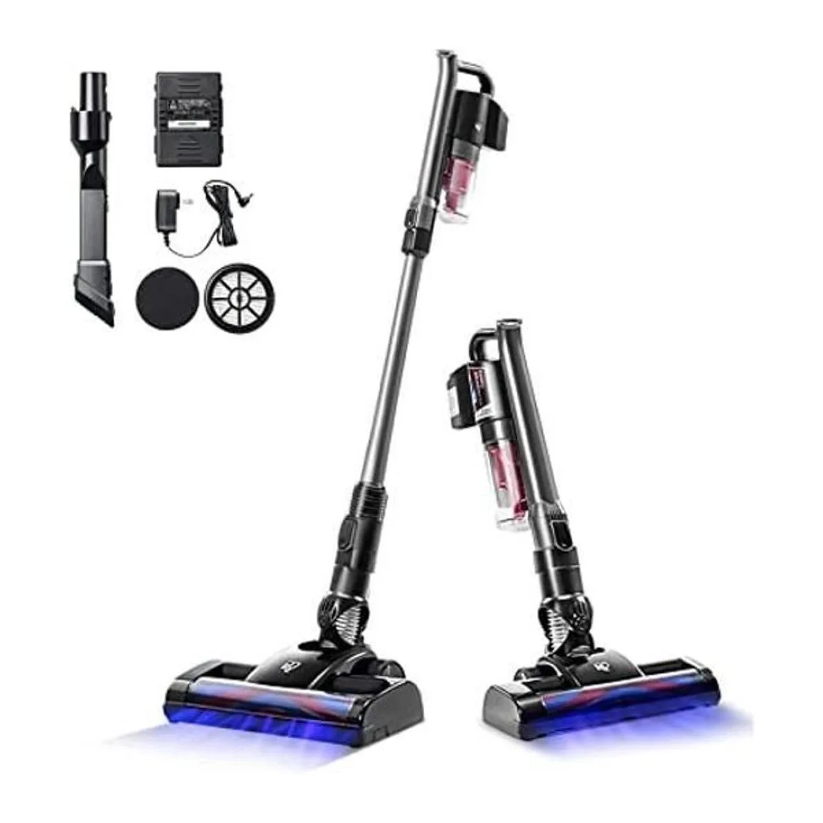 IRIS USA Limpiador inalámbrico con aspiradora de succión ciclón de batería recargable reemplazable, hasta 35 minutos de tiempo de funcionamiento, filtro lavable, para suelos duros y alfombras bajas, alta potencia en platarojo vino