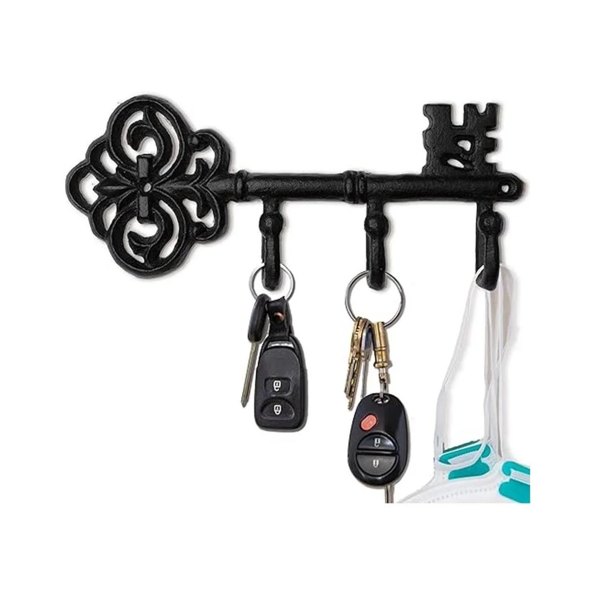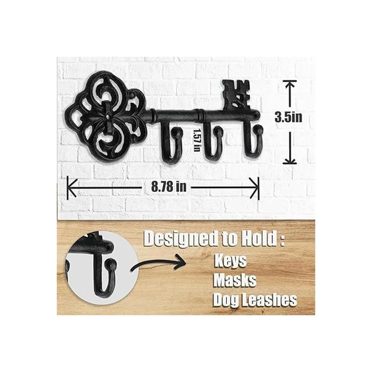 IRISVITA Soporte para llaves para decoración de pared, soporte para llaves de pared de hierro fundido negro antiguo, ganchos rústicos para pared con 3 ganchos, 8.75 x 3.5 pulgadas con embalaje de casa, tornillos y anclajes a juego incluidos