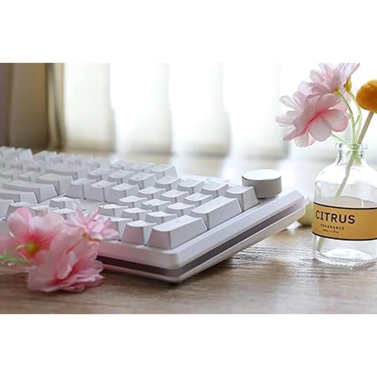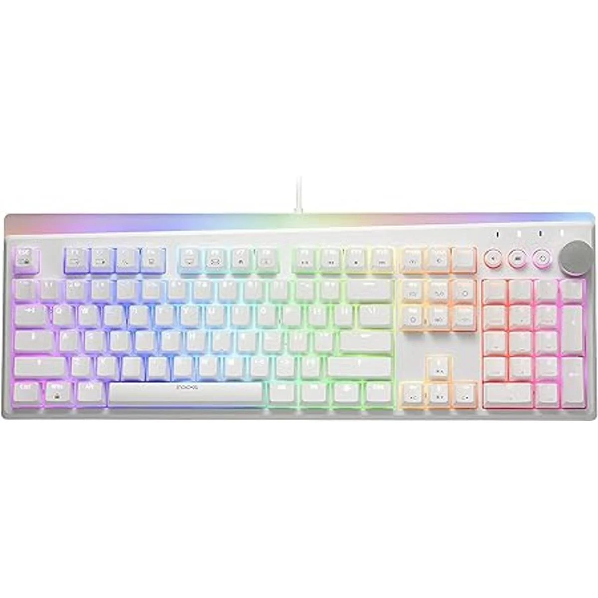 irocks K71M Teclado mecánico RGB para juegos con perilla de control de medios, interruptores Gateron marrón, 104 teclas con NKRO completo, teclas PBT, teclas de acceso rápido multimedia, cable USBC desmontable y almacenamiento integrado, color blanco