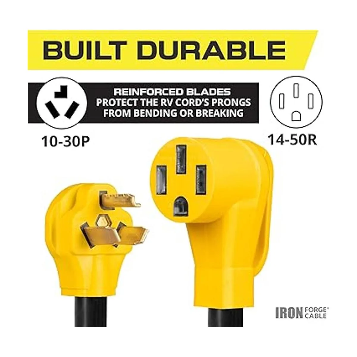 IRON FORGE CABLE Cable adaptador de cargador EV de 1030P a 1450R, enchufe macho de 1.5 pies 103 STW de 30 amperios a receptáculo hembra de 50 amperios
