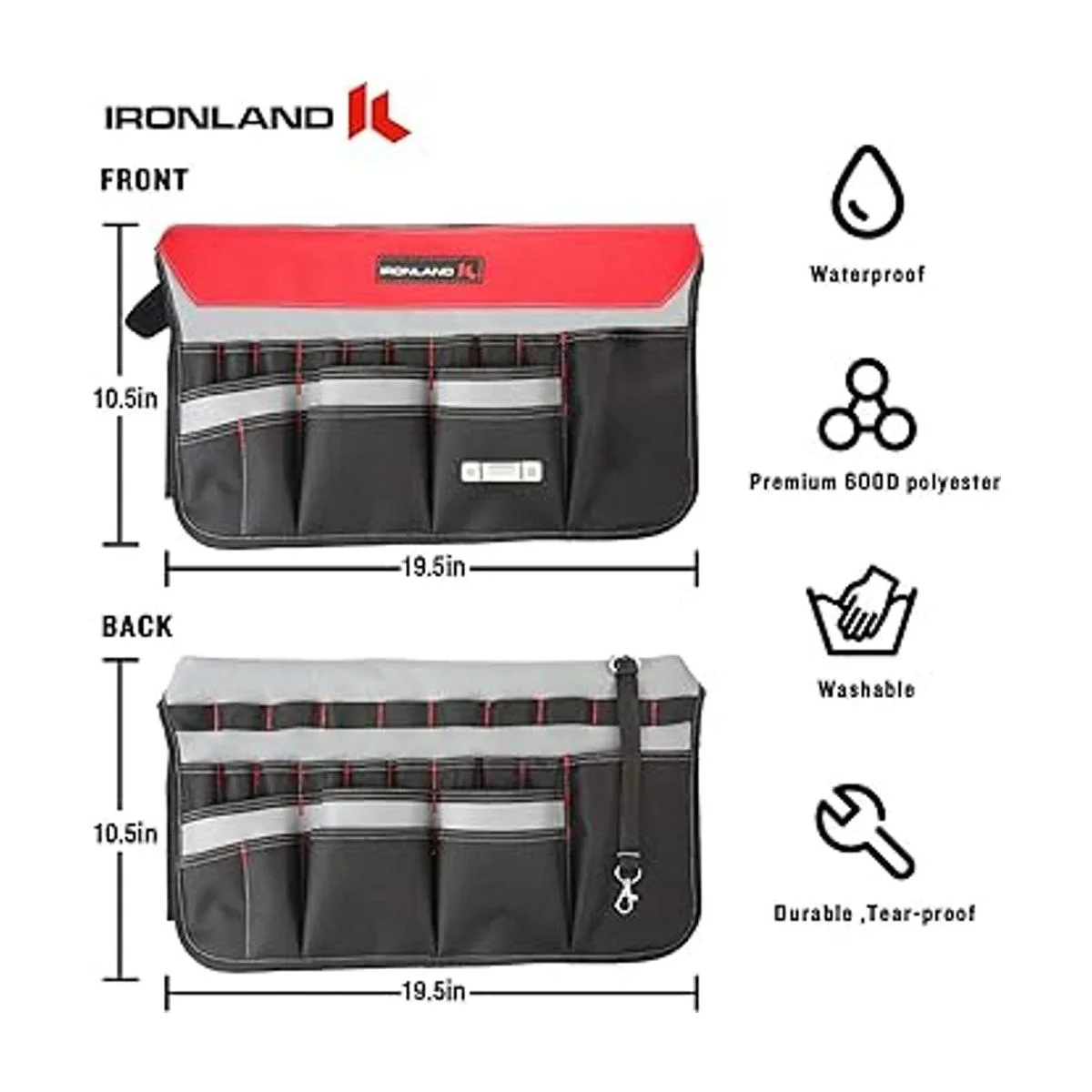 Construcción resistente: el organizador de cubos IRONLAND está inspirado en la carpintería, constructor, electricista y otras personas con habilidades prácticas que necesitan un cubo de herramientas. Elegimos más de 10 ocupaciones diferentes y cambiamos nuestro diseño cientos de veces hasta que satisfaga sus necesidades. Por último, tenemos esta bolsa de herramientas duradera, a prueba de desgarros e impermeable.