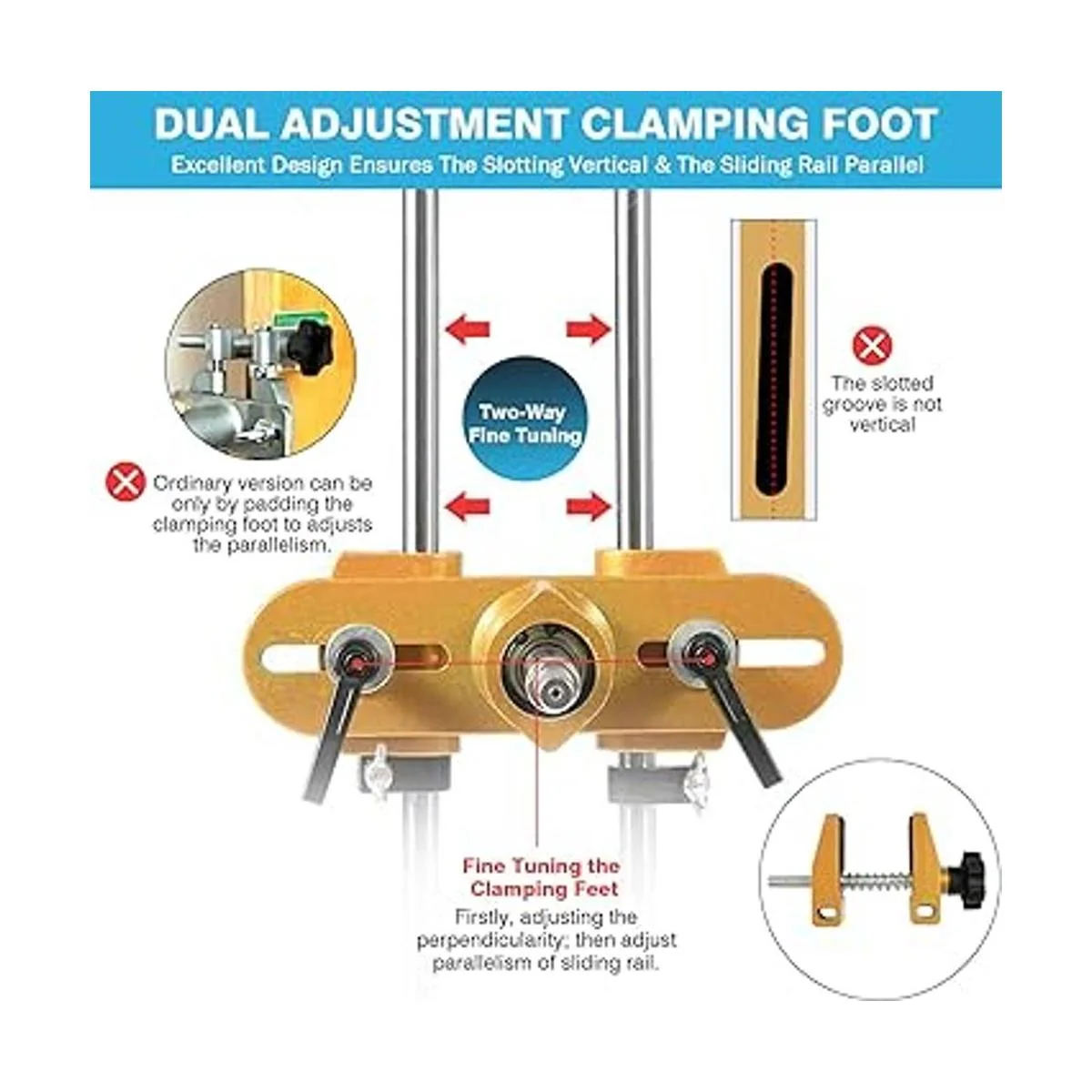 Ranura precisa de bloqueo de puerta: esta herramienta multifuncional mejorada de apertura de ranura de bloqueo de puerta cuenta con pies de sujeción de doble ajuste, que proporcionan más espacio de ajuste para los rieles deslizantes para garantizar que dos rieles deslizantes sean paralelos y la ranura es vertical. Además, los pies de sujeción activos se pueden bloquear para garantizar la estabilidad y precisión mientras se abre el agujero de bloqueo. Esta plantilla de ajuste de cerradura de mortaja puede garantizar un ajuste perfecto para tu cerradura de puerta y prevenir eficazmente costosos errores.