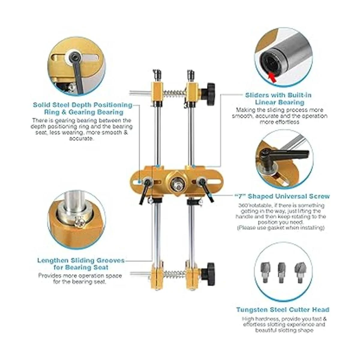 3 cuchillas cortadoras:18/22/24 mm Esta máquina de mortaja tiene 3 cortadores de agujeros diferentes tamaños: 18/22/0.945 in hechos de acero de carburo de tungsteno de alta dureza, ranurado rápido, borde afilado, suave y hermosa forma de ranurado. Al elegir el tamaño de la blase, mide el ancho de la placa guía de la cerradura. El tamaño del cortador no puede ser mayor que el ancho de la placa guía.