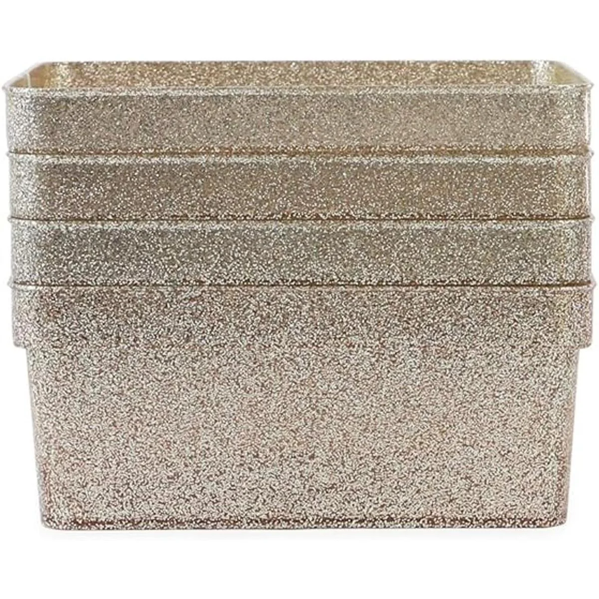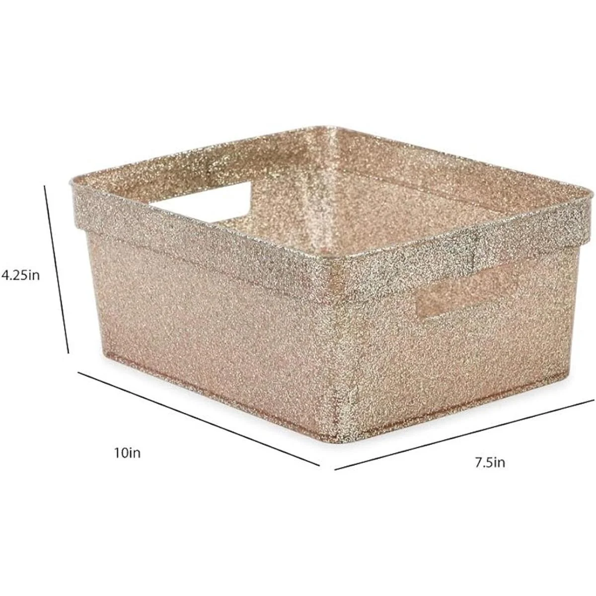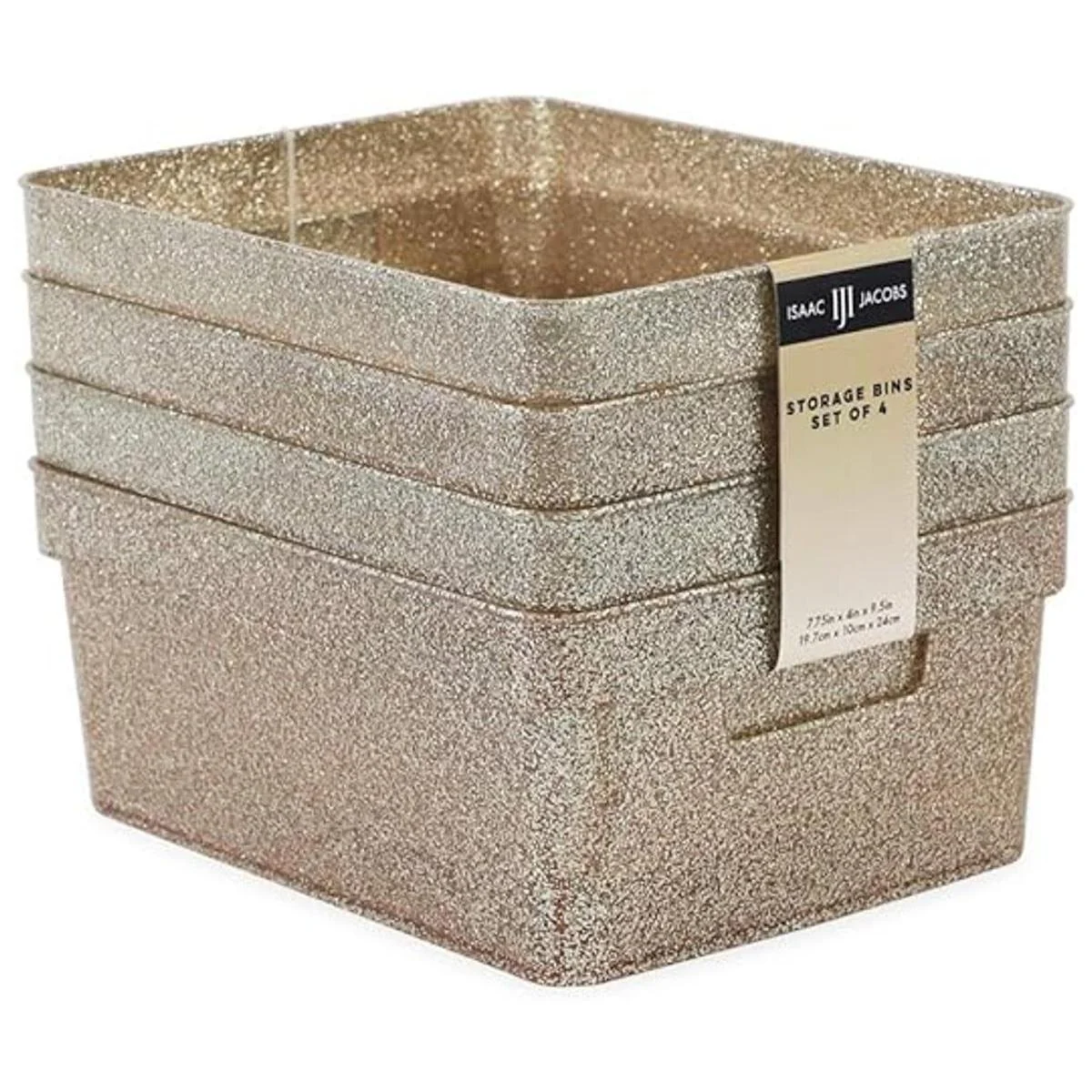 Isaac Jacobs Contenedores de almacenamiento pequeños con purpurina 10 x 7.5 x 4.25 pulgadas con asas recortadas, organizador de plástico, multifuncional, solución de almacenamiento en el hogar, sala de juegos para niños, dormitorio, armario 4, iridiscente