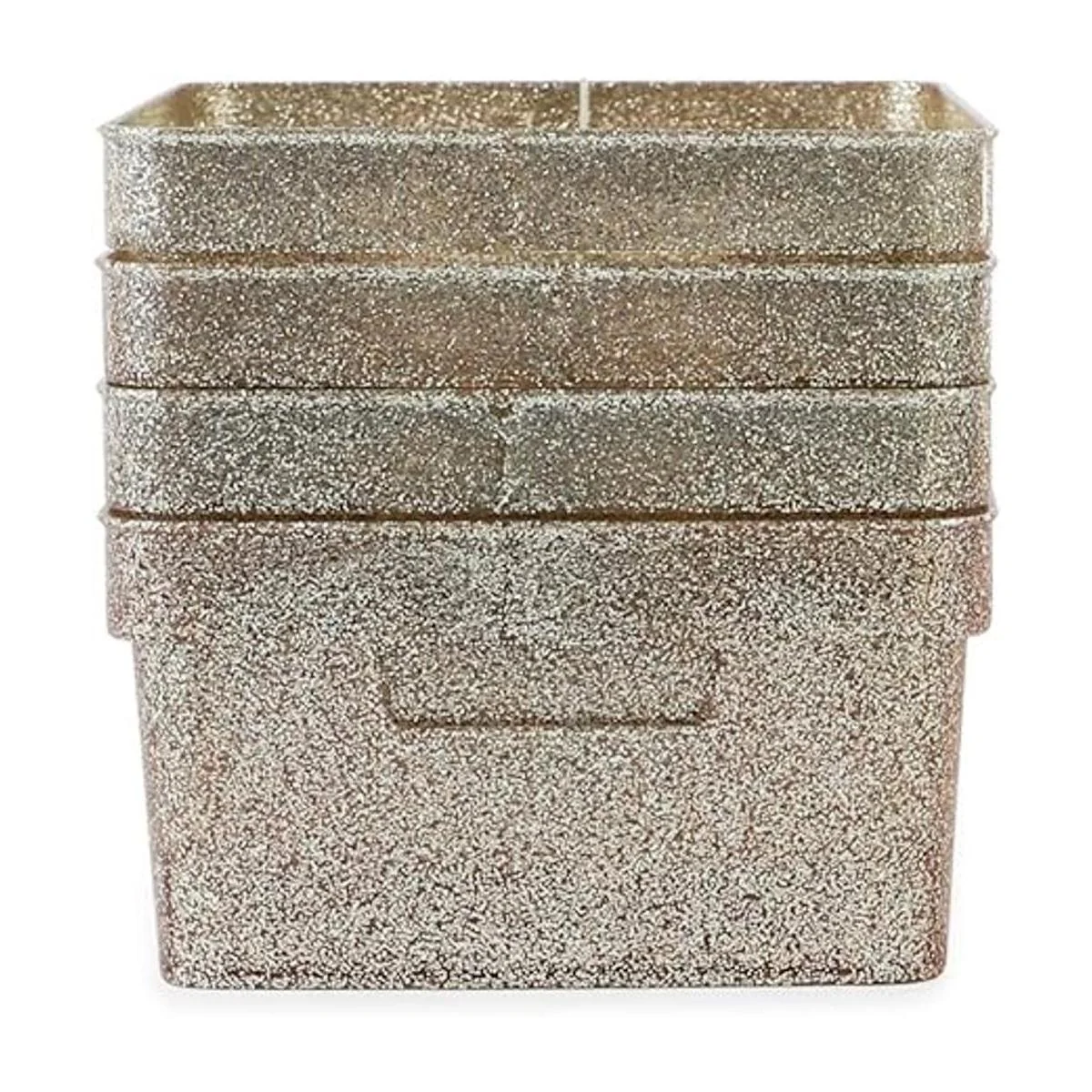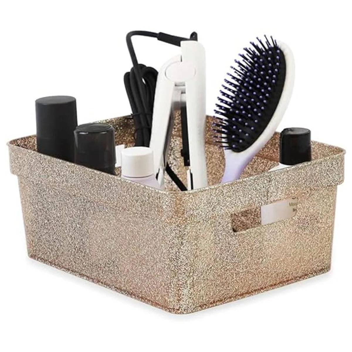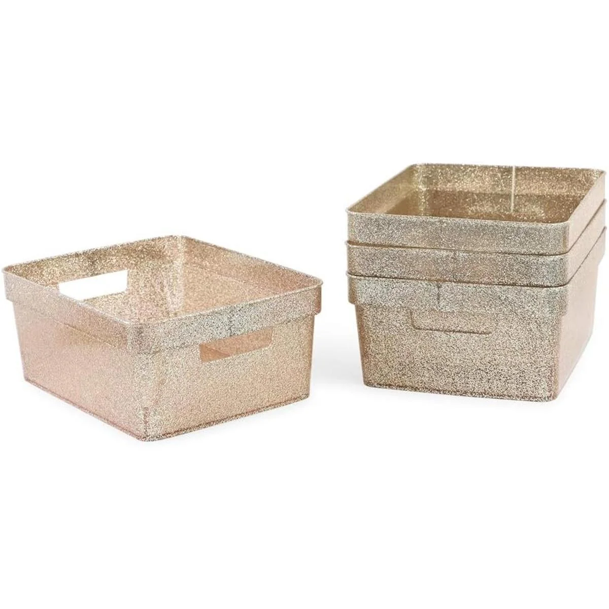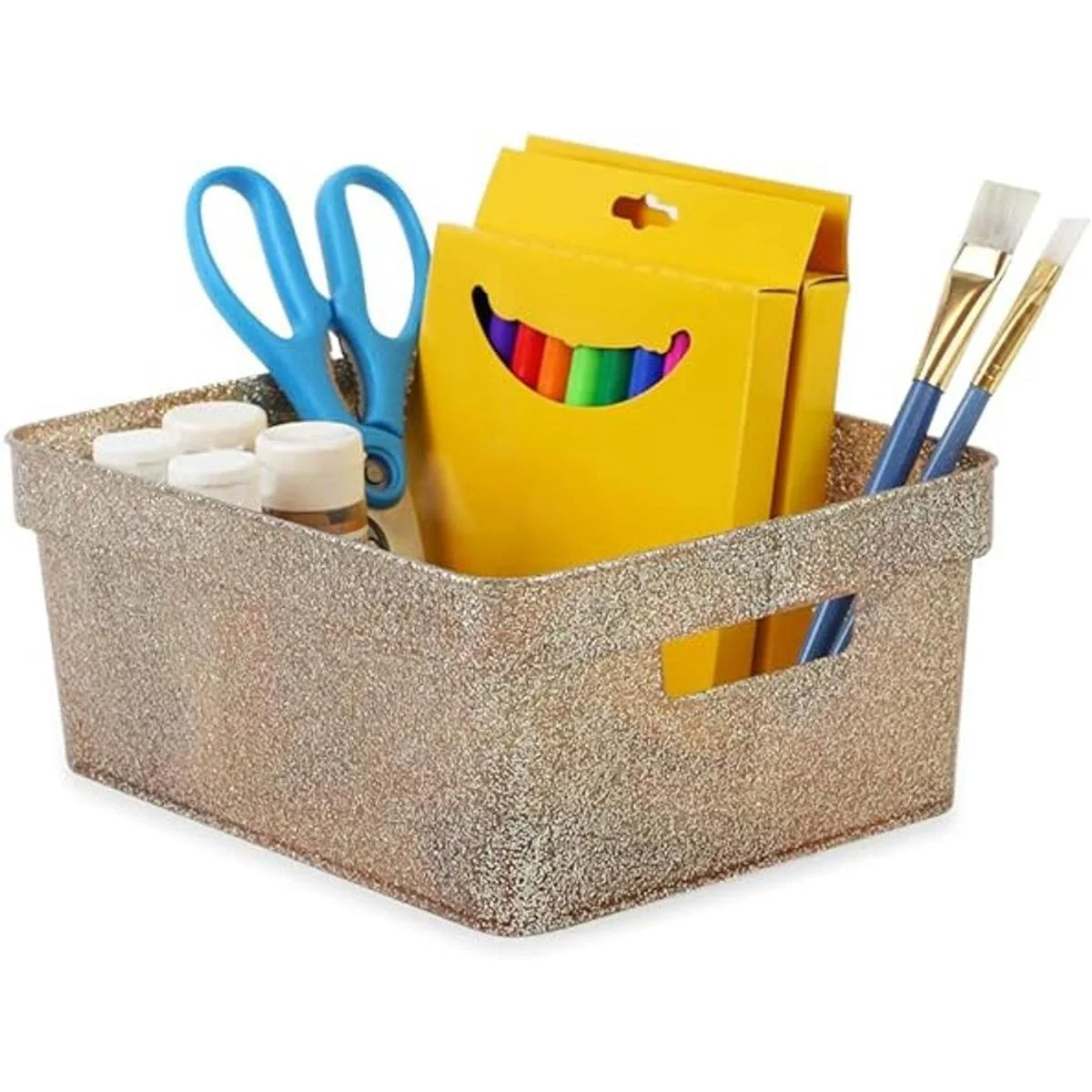 Isaac Jacobs Contenedores de almacenamiento pequeños con purpurina 10 x 7.5 x 4.25 pulgadas con asas recortadas, organizador de plástico, multifuncional, solución de almacenamiento en el hogar, sala de juegos para niños, dormitorio, armario 4, iridiscente