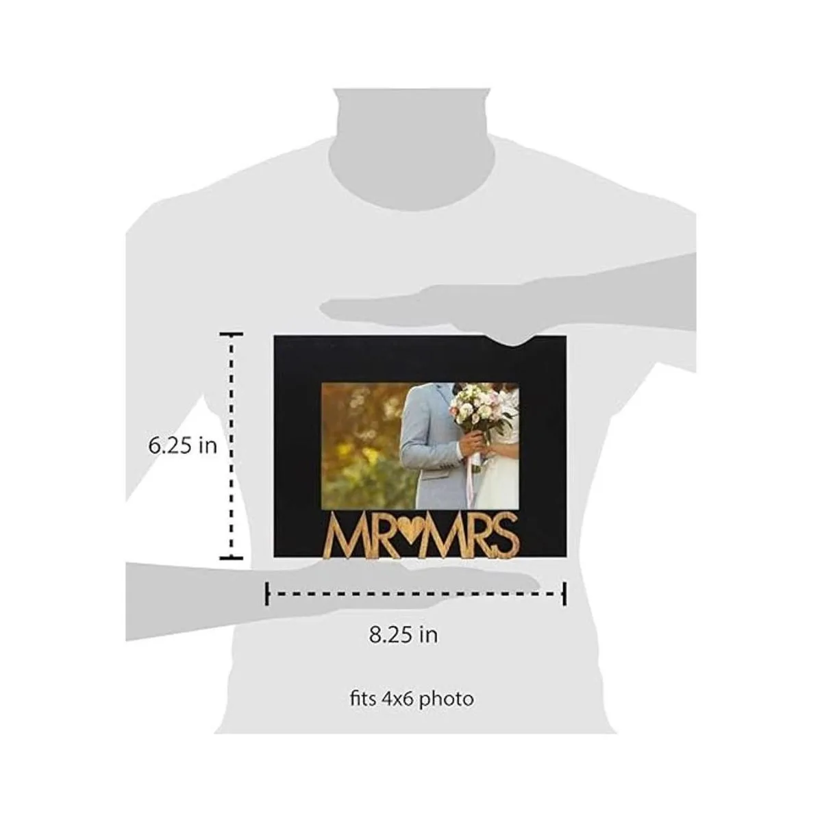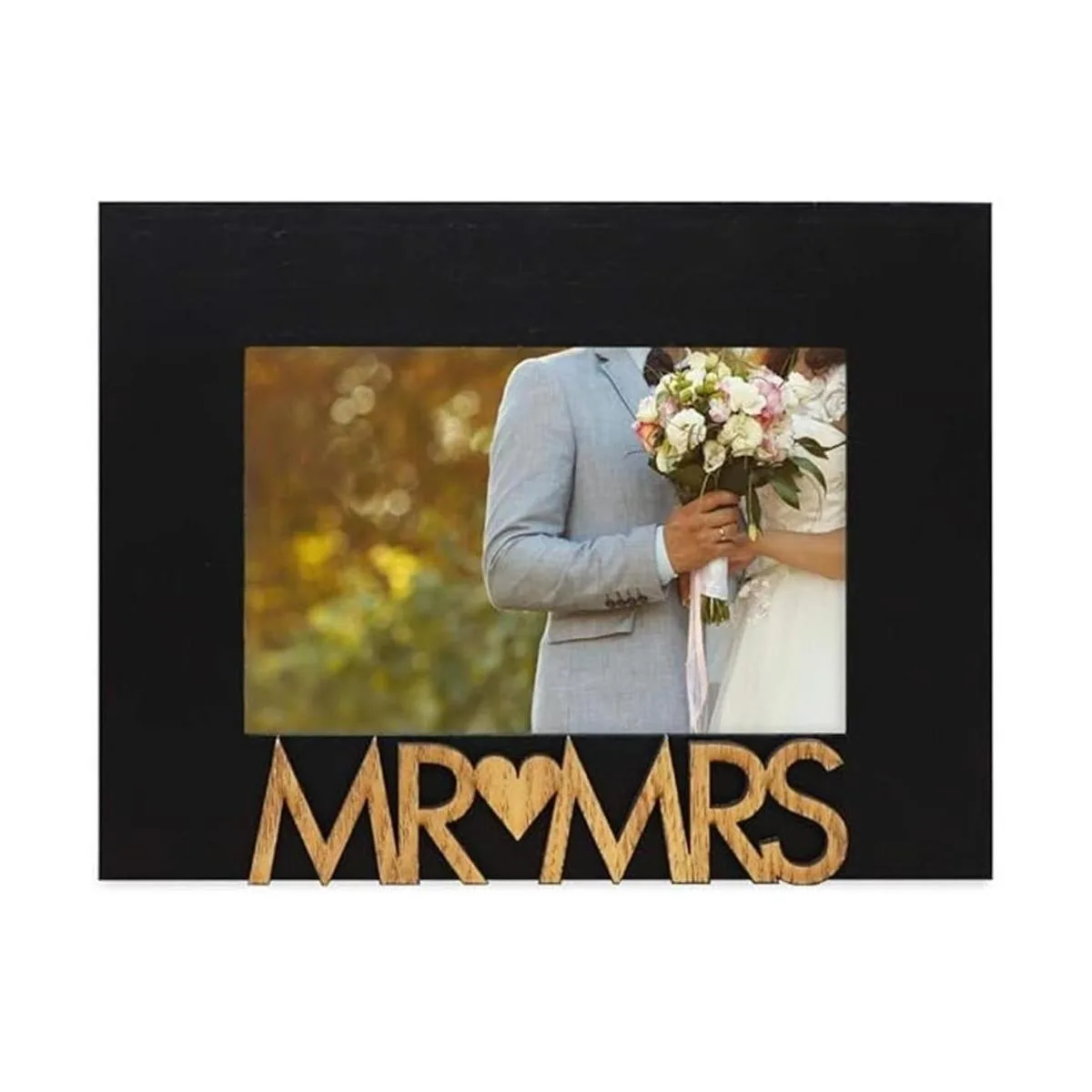 Diseño del marco: simple pero versátil, el borde de madera negro limpio del marco con 1.5 pulgadas de grosor captura el corazón de tus fotos. En la parte inferior hay letras recortadas de madera rústica pintadas en un tinte natural que deletrea Mr Mrs. Las bonitas letras, unidas por un corazón que título el marco, son un bonito toque para resaltar una foto de boda de la novia y el novio. Este marco sentimental está hecho para mostrar la mejor noche de su vida de una pareja y celebrar el hito y el establecimiento de uno de los muchos primeros