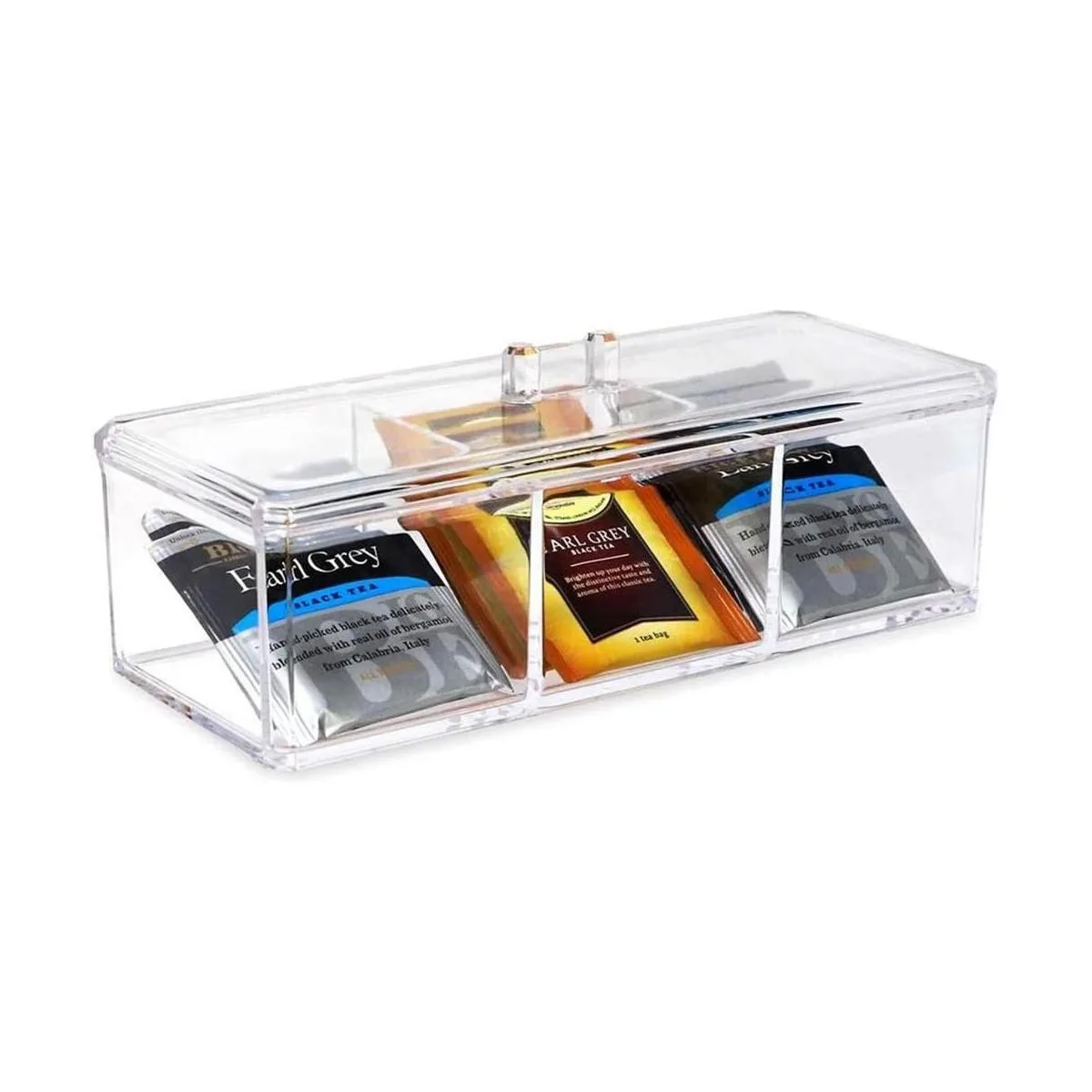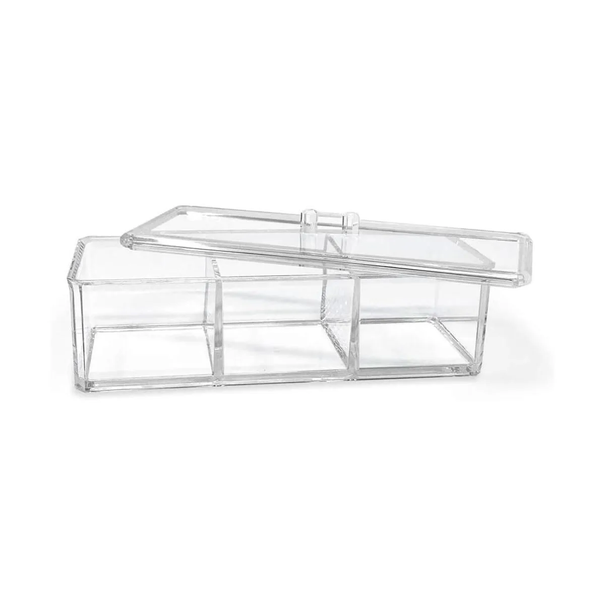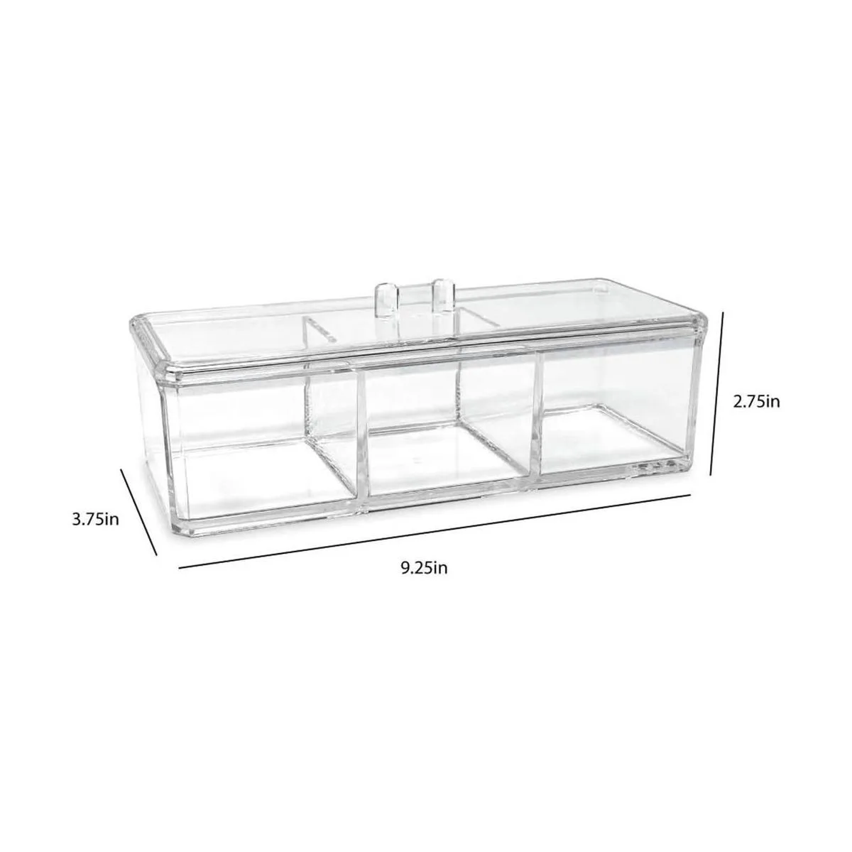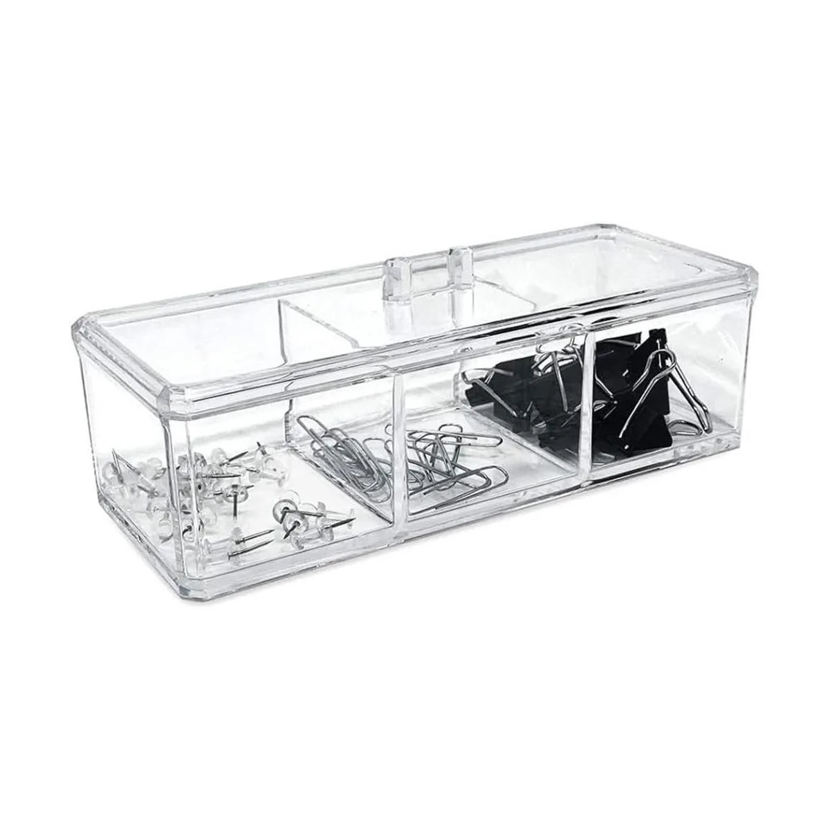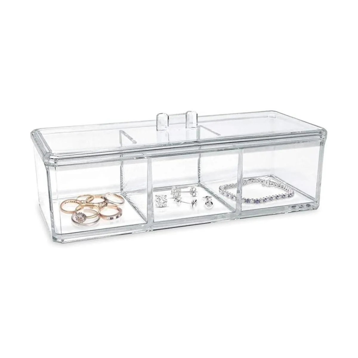 Isaac Jacobs Organizador apilable rectangular de acrílico transparente de 3 compartimentos con tapa, bandeja de cajón multiseccional, solución de almacenamiento para maquillaje, suministros de manualidades, para baño, cocina, oficina (1, transparente)