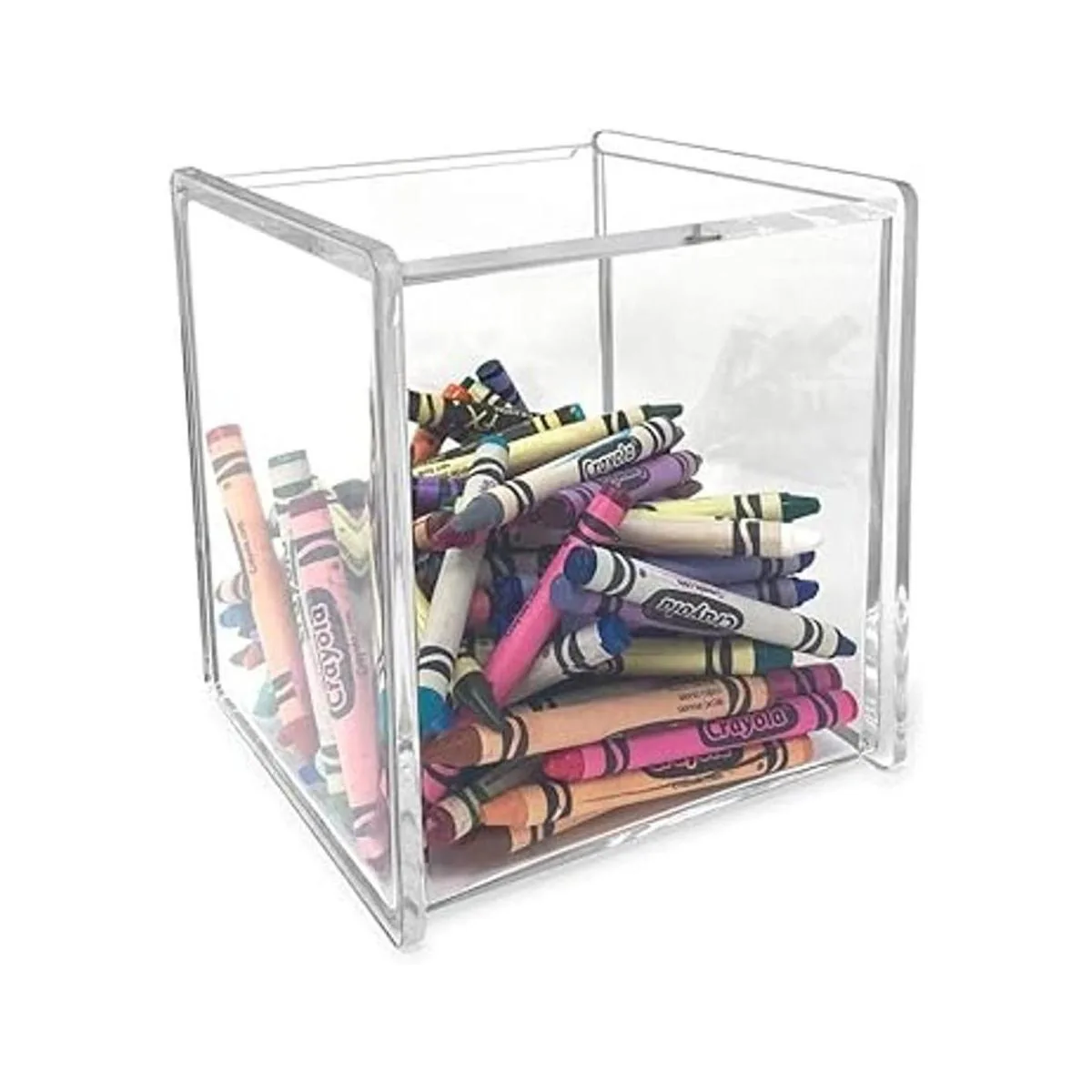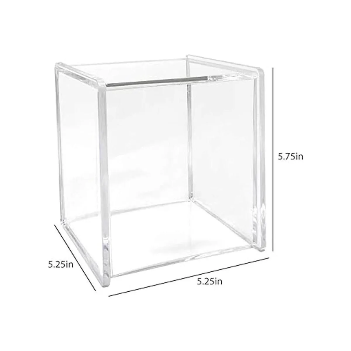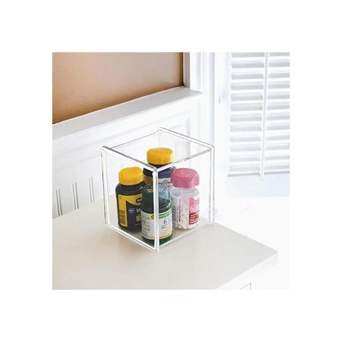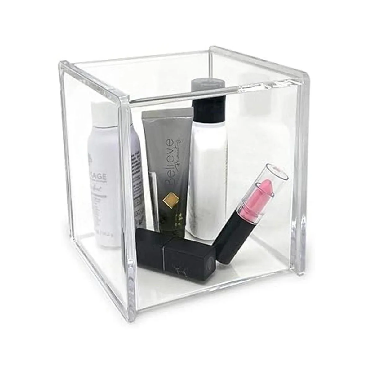 Alta calidad: esta caja organizadora está construida con Lucite. Tiene una cubierta resistente que es fácil de abrir y protegerá tus artículos del polvo. El cubo transparente está diseñado para ser apilable, lo que ahorra aún más espacio en el mostrador. Tus necesidades diarias permanecerán visibles para que puedas agarrar artículos cuando estés en movimiento. Su brillo transparente se puede mantener limpiando con un paño o toalla de papel Nota: no utilizar limpiador de ventanas en acrílico Dimensiones totales: 5.25 pulgadas de largo x 5.25 pulgadas de ancho x 5.75 pulgadas de alto