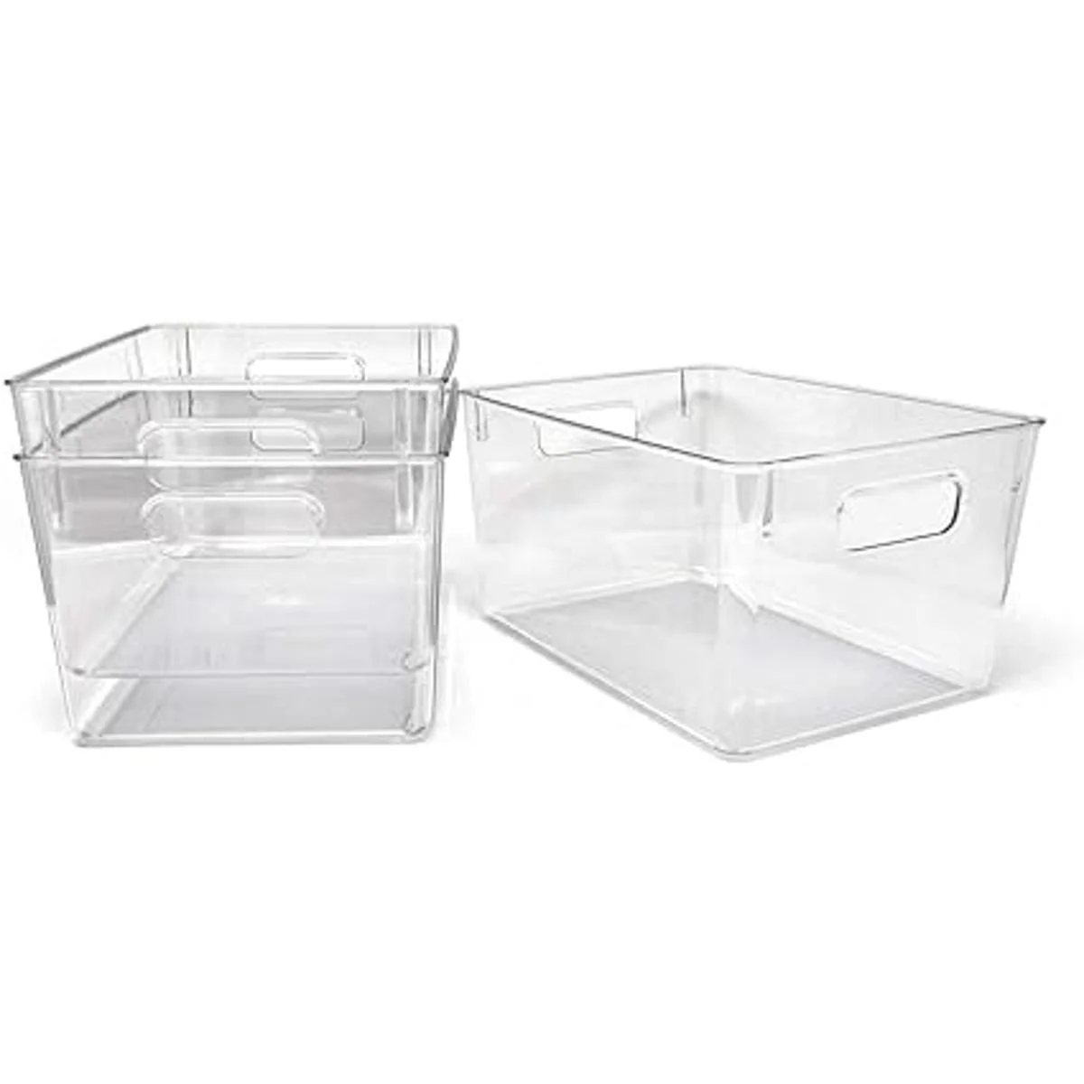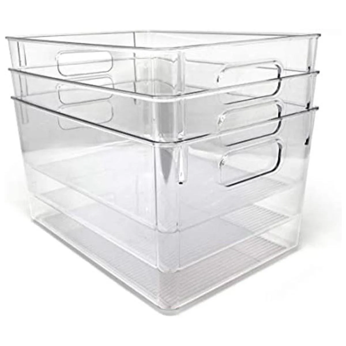 Isaac Jacobs Paquete de 3 cubos de almacenamiento grandes transparentes con asas, organizador de plástico para el hogar, habitación, oficina, nevera, cocinadespensa, juego de contenedores antideslizantes, aptos para alimentos, sin BPA paquete de 3, grande