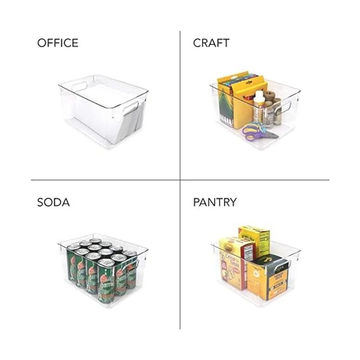 Multiusos: utiliza este juego organizador sin BPA para toda tu casa. Imagina poder organizar tu cocina con contenedores de refrigerador que ahorran espacio: almacenar diferentes tipos de alimentos, bebidas, frutas y verduras en el refrigerador, y organizar aperitivos, latas y preparación de comidas en la despensa. Ordena toda la casa, incluyendo tu armario. Agrupa calcetines en el dormitorio, suministros de limpieza en la lavandería, artes y manualidades en la sala de juegos, y suministros para el cabello y la belleza en contenedores transparentes separados en el baño.