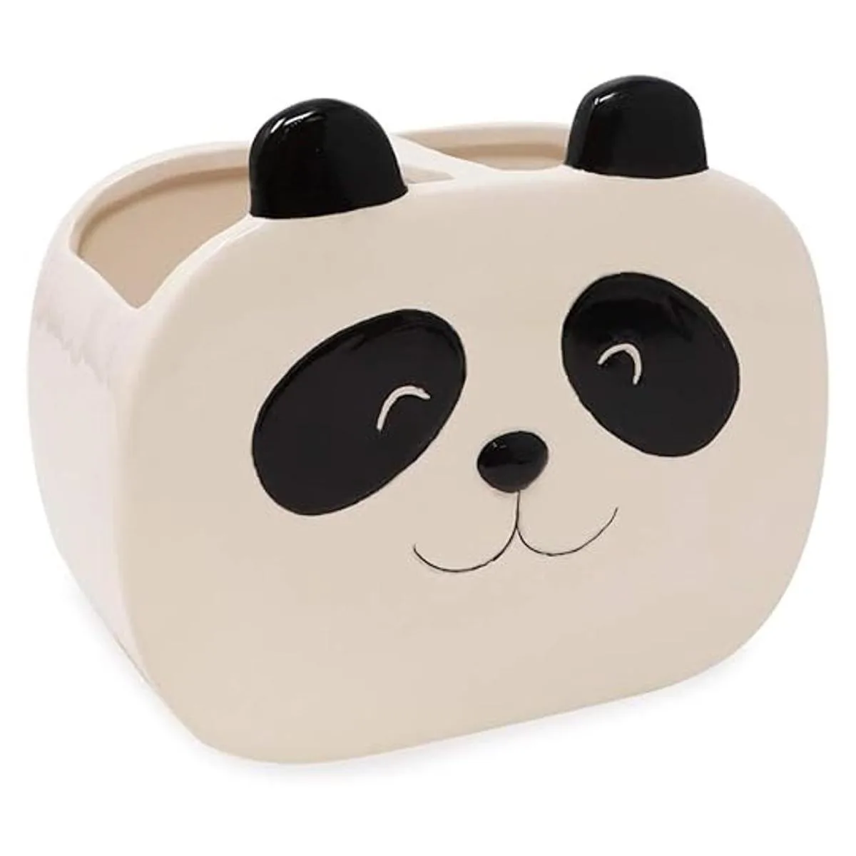 Isaac Jacobs Soporte para brochas de maquillaje de panda de cerámica en blanco y negro, organizador multiusos de 2 secciones. baño, cocina, dormitorio, decoración de oficina taza de 2 secciones, Panda