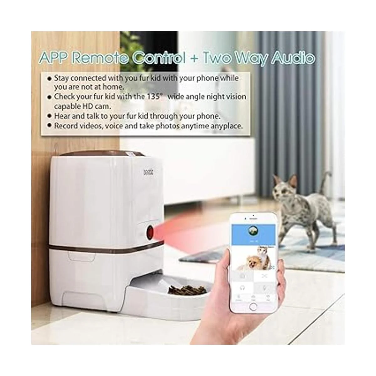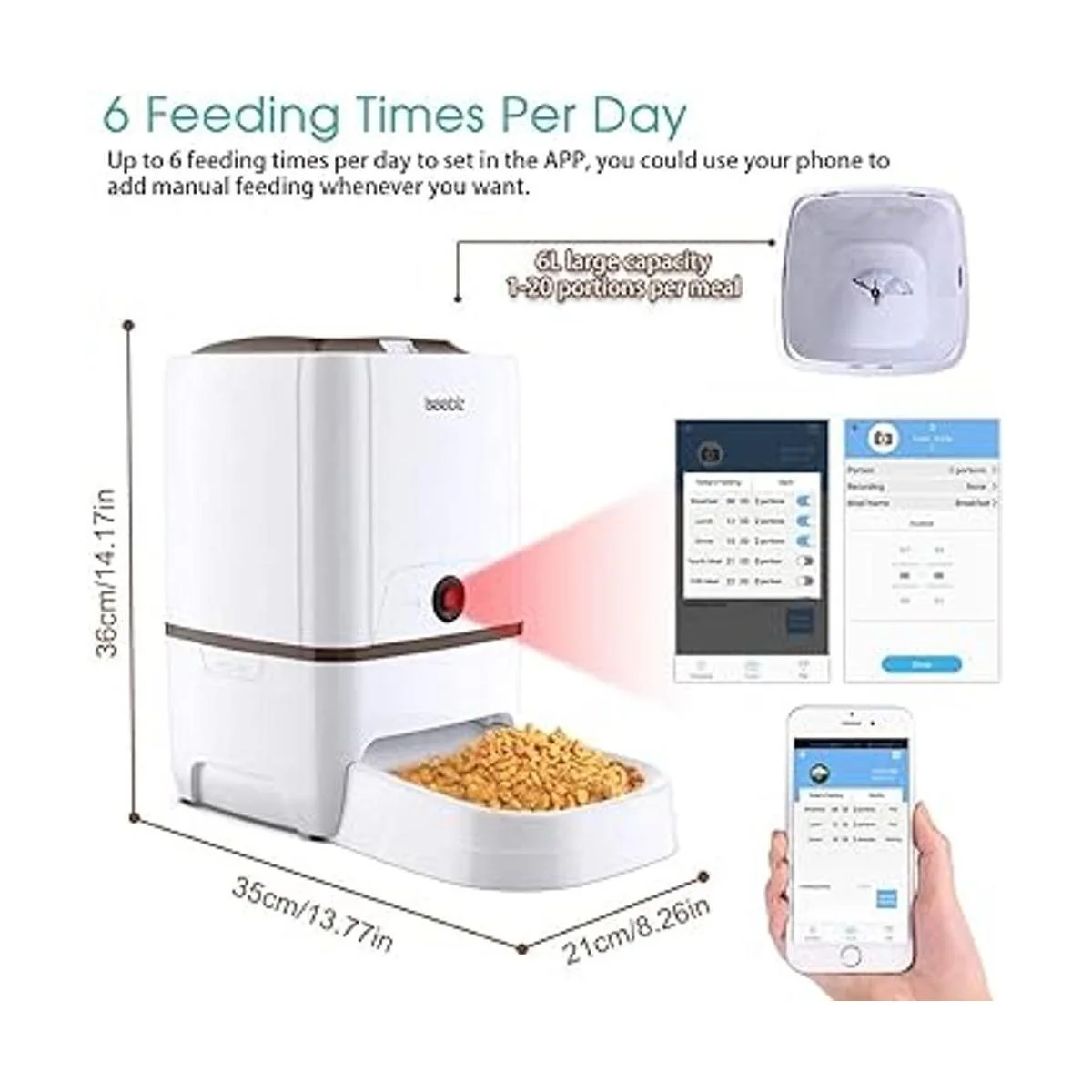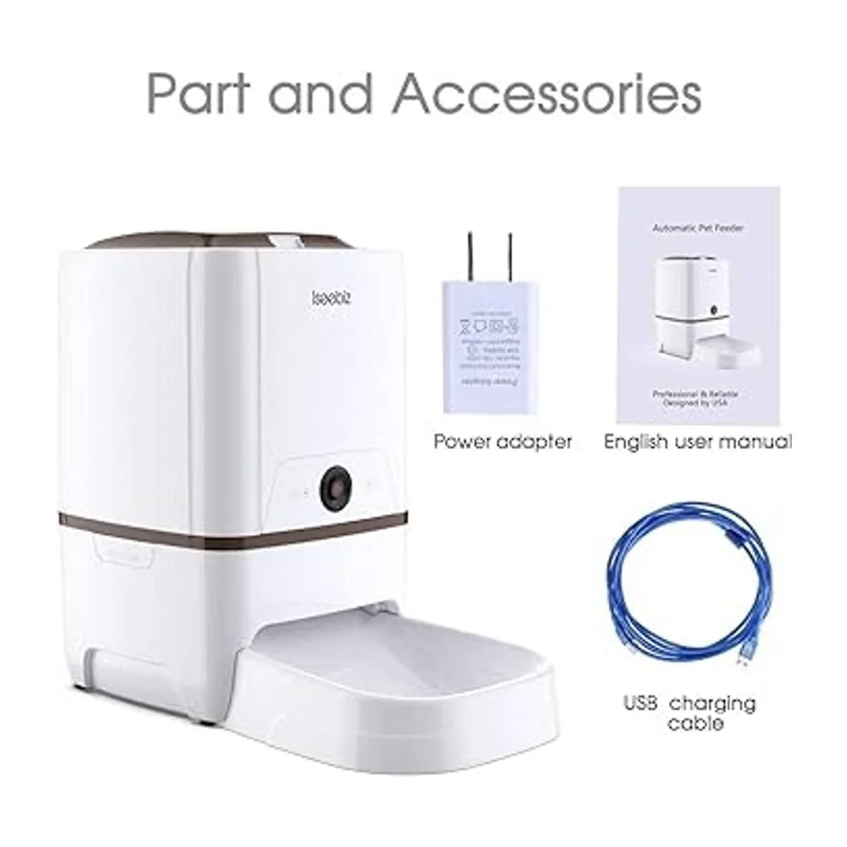 Iseebiz Comedero automático para mascotas con cámara, 6 litros de control de aplicación inteligente, dispensador de alimentos para gatos y perros, audio de 2 vías, recordatorio de voz, grabación de video, 6 comidas al día para perros medianos y grandes, compatible con Alexa