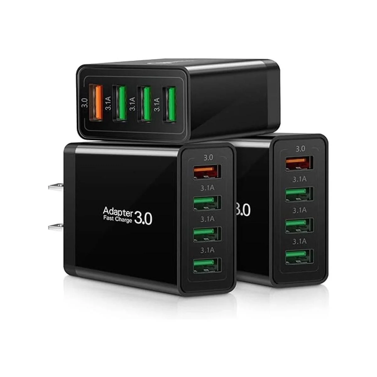 Adaptadores de corriente rápida de 4 puertos de 33 W : Cargador USB rápido de 4 puertos/adaptador de pared de estación uno diseñado con múltiples puertos: un puerto de carga rápida de 18 W y 3 puertos de salida extra de 5 V/3.1 A para proporcionarte la velocidad de carga adaptativa y satisfacer tus diferentes necesidades, también te permite cargar cualquier dispositivo de 4 teléfonos con la velocidad de carga óptima. Total de 3 cargadores de pared USB 3.0 de 4 puertos es perfecto como reemplazo para cargador OEM o cargador antiguo para viajes, hogar, oficina y regalos para amigos y familiares.