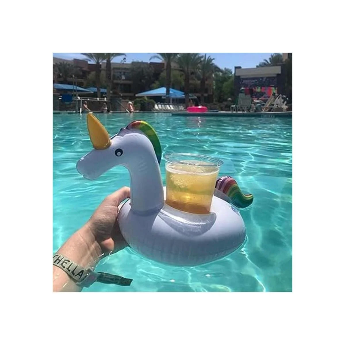 Diseño único: el flotador de portavasos es muy ligero, puedes llevar flotadores de bebidas a cualquier fiesta, si quieres usar, simplemente rellena el aire. Cuando te sientas sed mientras flotas o nadas, puedes tomar la bebida flotante en el agua, disfrutando de tu fiesta.