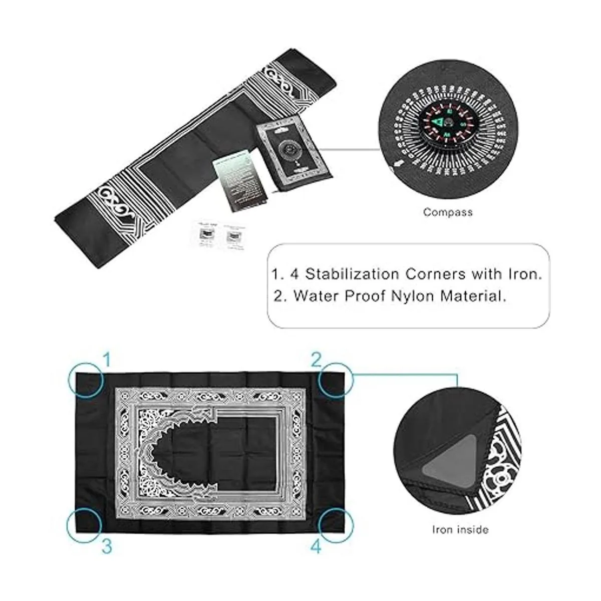 Islámica hitopin Prayer Mat de viaje con brújula Tamaño de bolsillo bolsa de transporte y Attached Brújula Oración Alfombra portátil poliéster 60100 cm 2 paquetes