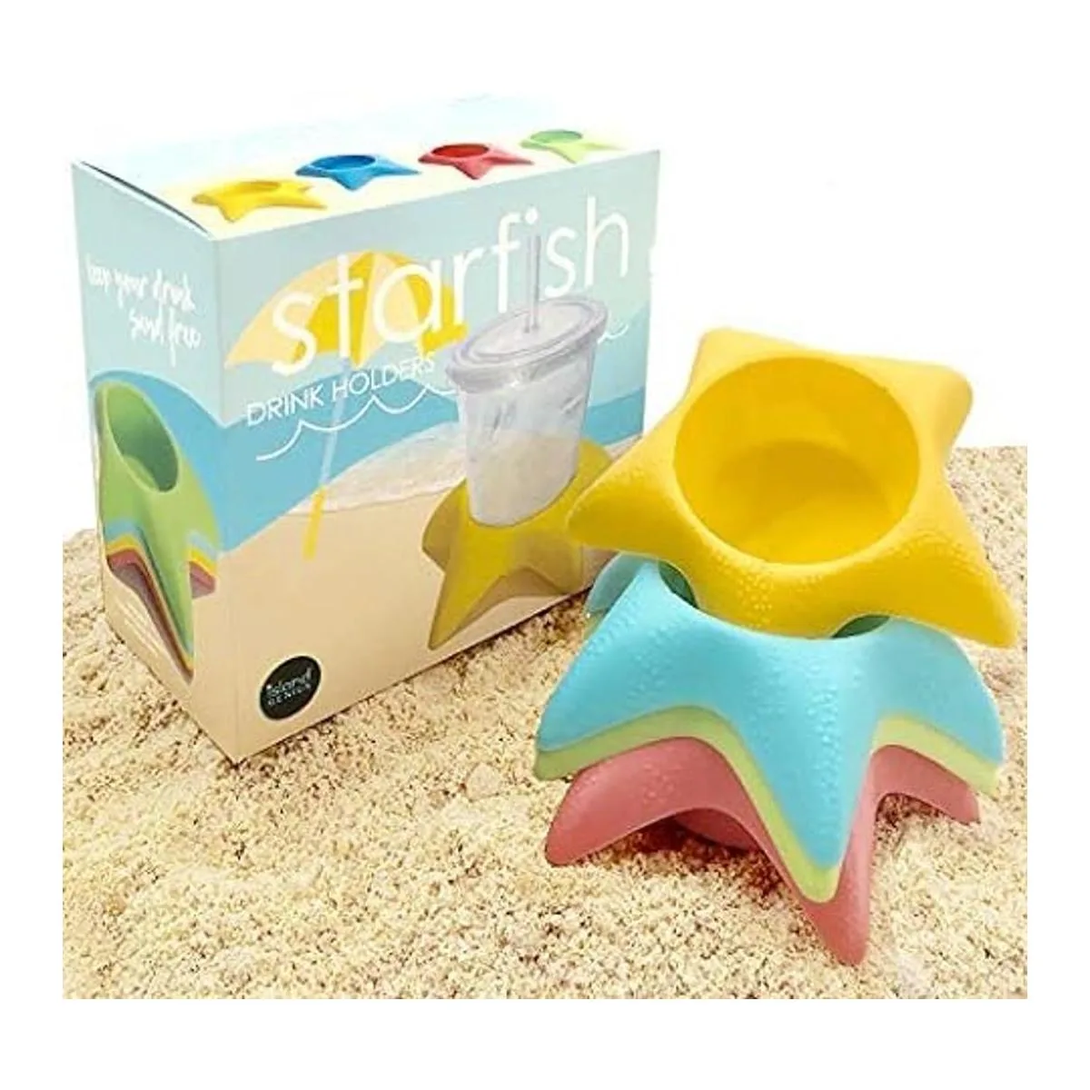Nuestro juego de soportes para bebidas Island Genius Starfish incluye 4 posavasos de arena coloridos con bolsa de transporte de malla.
