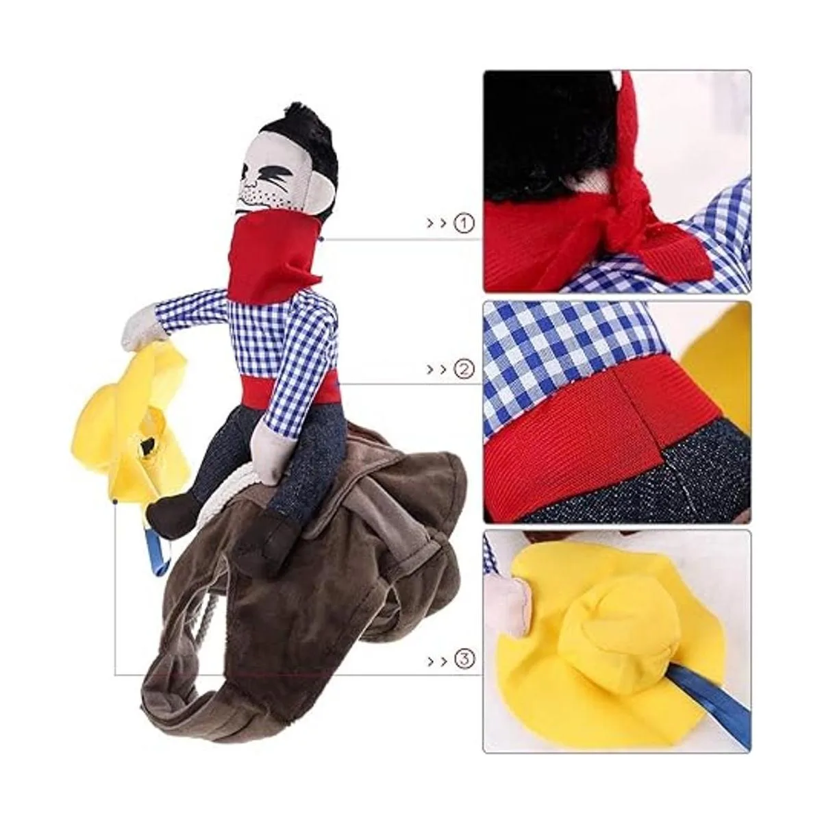 ISMARTEN Cowboy Rider Dog Costume for Dogs Outfit Knight Style with Doll and Hat Pet Costume for Halloween Day