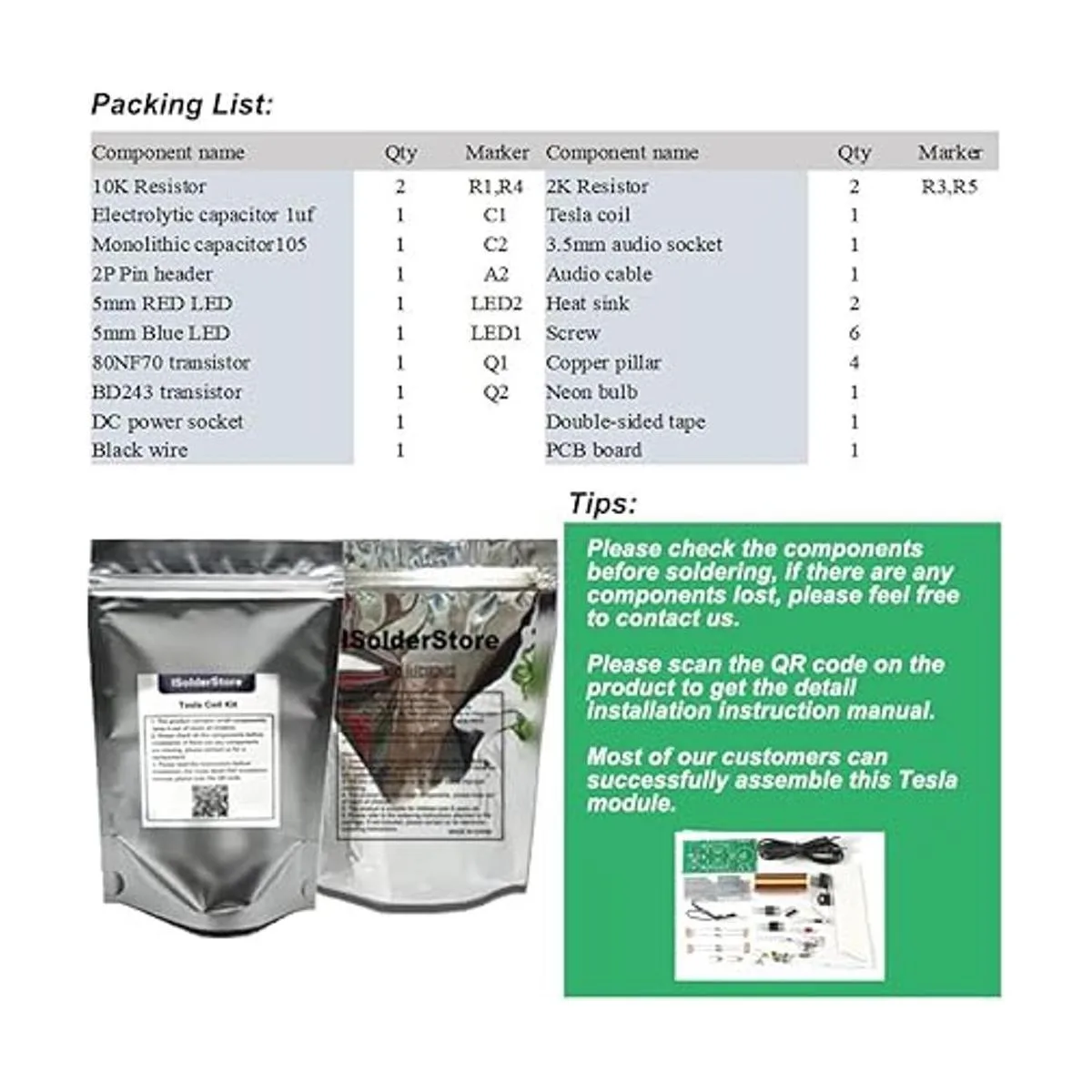 ISolderStore Kit de bobina mini Tesla de 15 W, kit electrónico de bricolaje mini música Tesla bobina de plasma altavoz kit de práctica de soldadura DIY proyecto de soldadura para adolescentes niños adultos regalo de Navidad Acción de Gracias