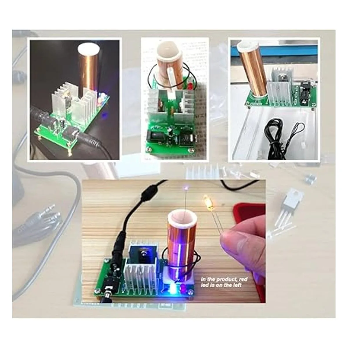 Kit de bobina Tesla para manualidades: entrada de 15 a 24 V CC, después de montarlo, obtendrás un juguete de bobina Tesla. Puedes observar el fenómeno Tesla. Puede producir arco eléctrico, iluminación sin contacto e incluso reproducir música. Cuanto mayor sea el voltaje, más evidente será el efecto. Nota: Quema o raspa la pintura en ambos extremos del alambre Tesla y luego soldarlo, de lo contrario es difícil trabajar.