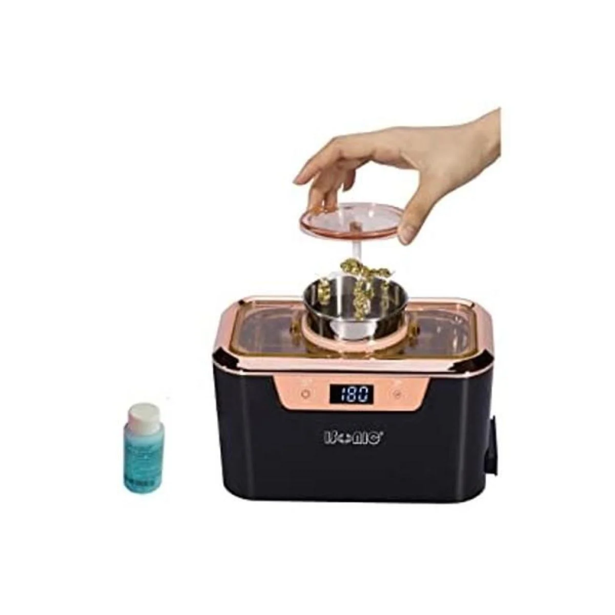 iSonic DS310 Limpiador ultrasónico comercial miniaturizado con soporte integrado de acero inoxidable para joyas, herramientas cosméticas, gafas, 110 V 55 W