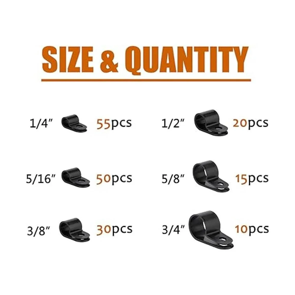ISPINNER 180 abrazaderas de cable tipo R de plástico de nylon, 14 516 38 12 58 34 Clips de fijación Kit surtido para conductos de cable negro