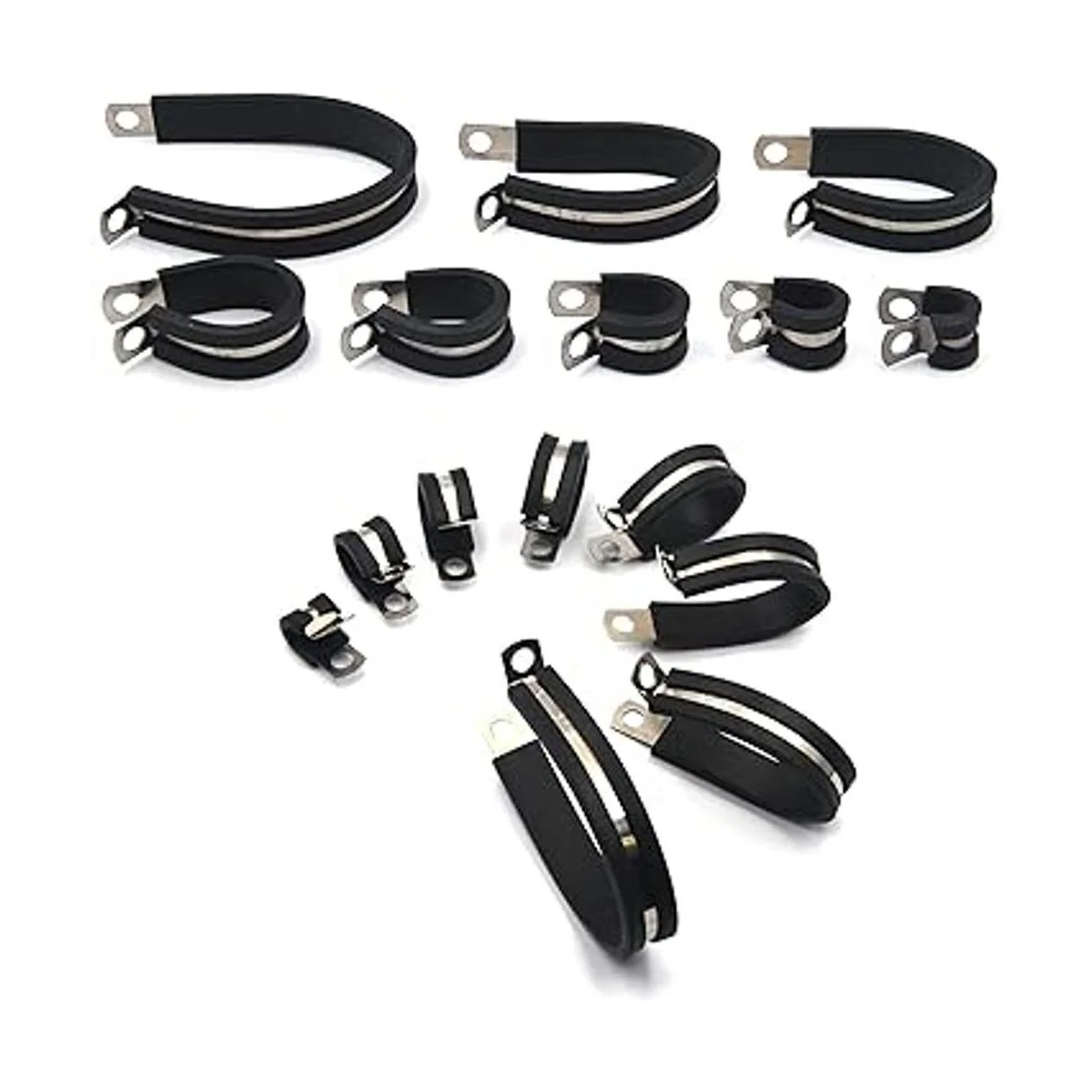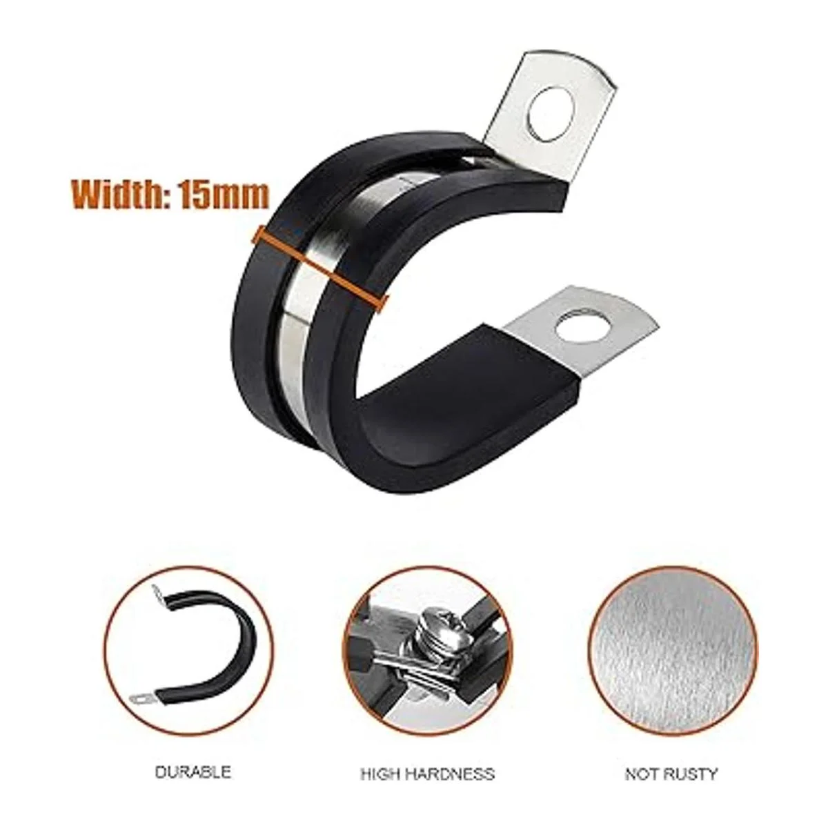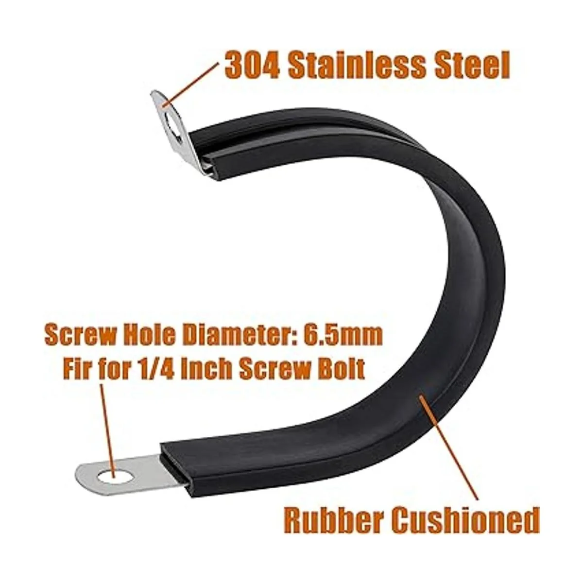 Alta calidad: estas abrazaderas de cable están hechas de acero inoxidable 304 de alta calidad combinado con goma EPDM aislada, que es resistente a la sal, la corrosión y el óxido, resistente al agua, a prueba de aceite. Las abrazaderas son resistentes, fuertes y fiables.