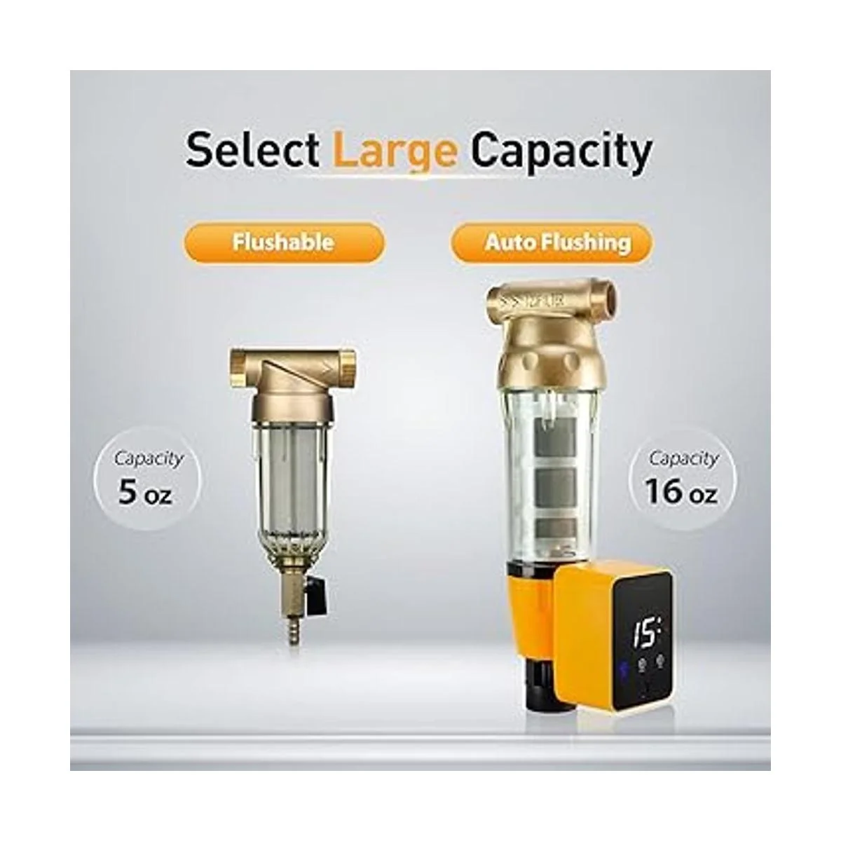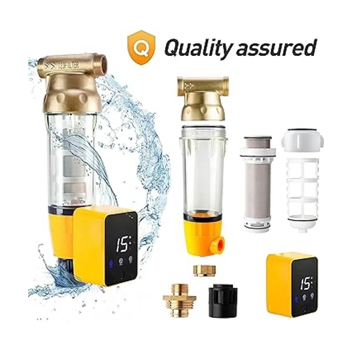 Materiales resistentes a la presión y duraderos: cabezal de máquina de latón sin plomo, pantalla de filtro de malla de acero inoxidable de grado alimenticio de 50 micras y carcasa transparente a prueba de explosiones
