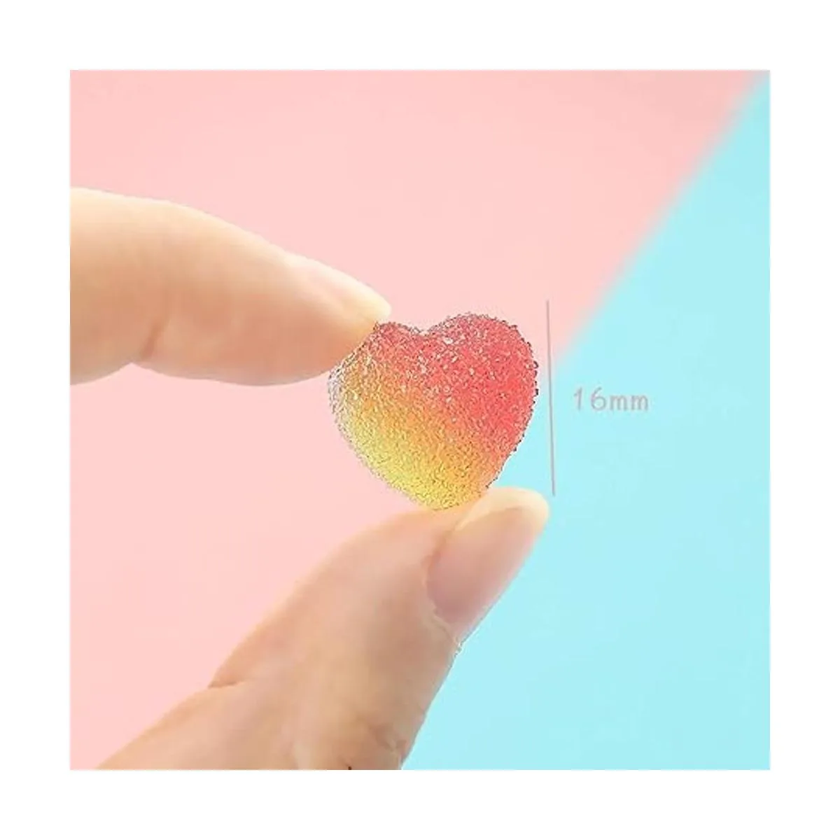 iSuperb Juego de 60 colgantes de resina de caramelo mixto con cabujón de amor con forma de corazón, diseño de caramelo dulce, resina epoxi, accesorios de bricolaje para álbumes de recortes forma de corazón