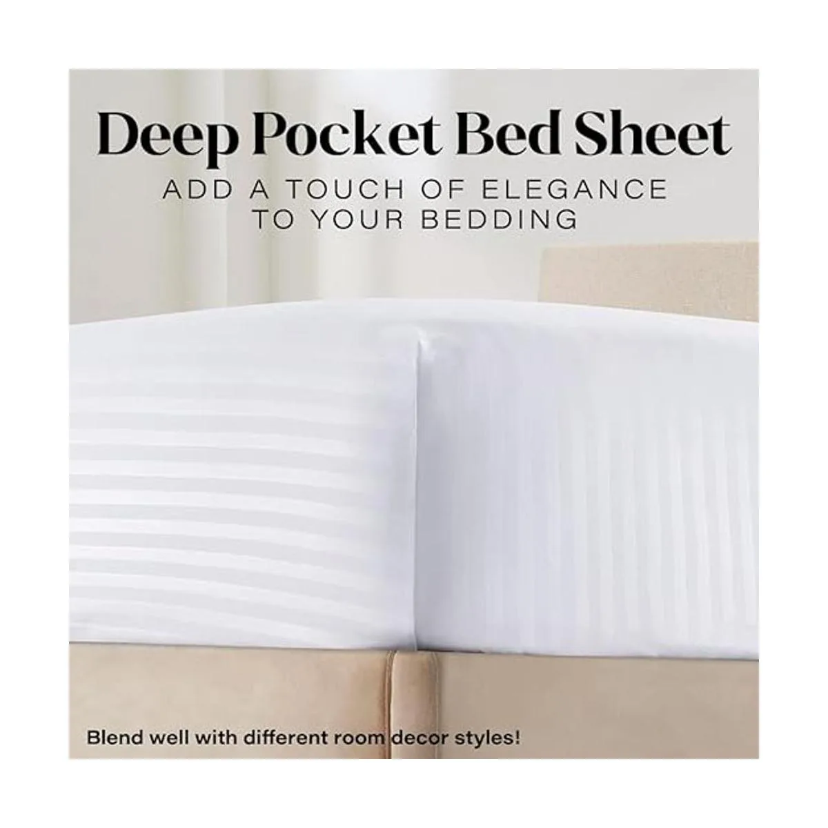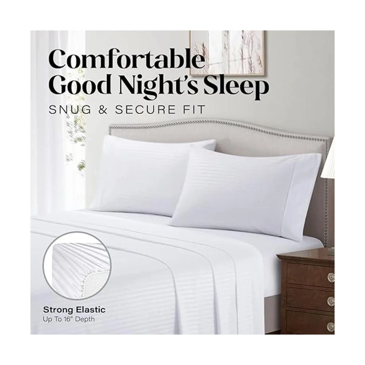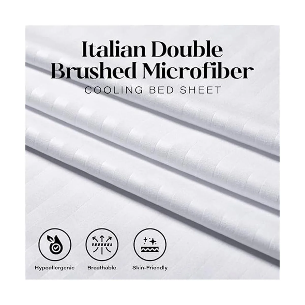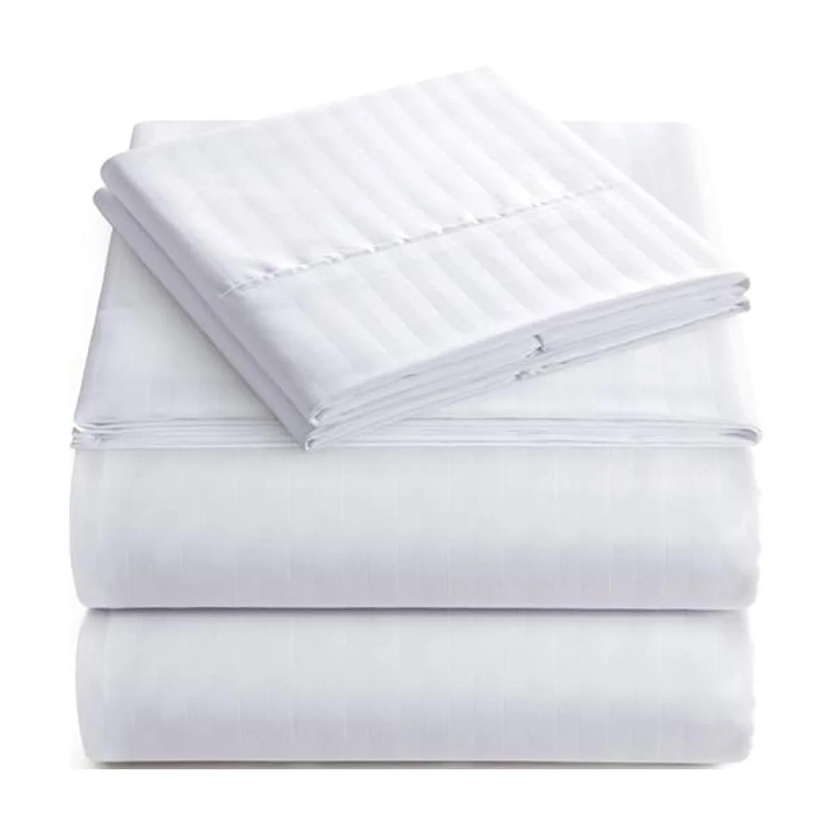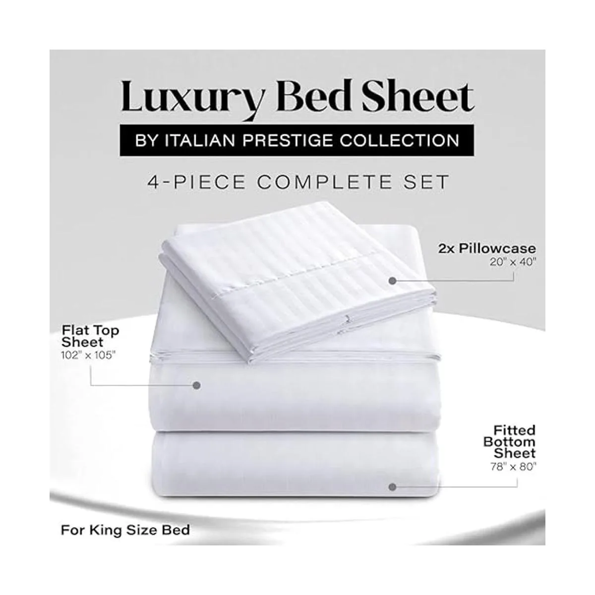 ITALIANO 4pc King Hoja Set de rayas, color blanco