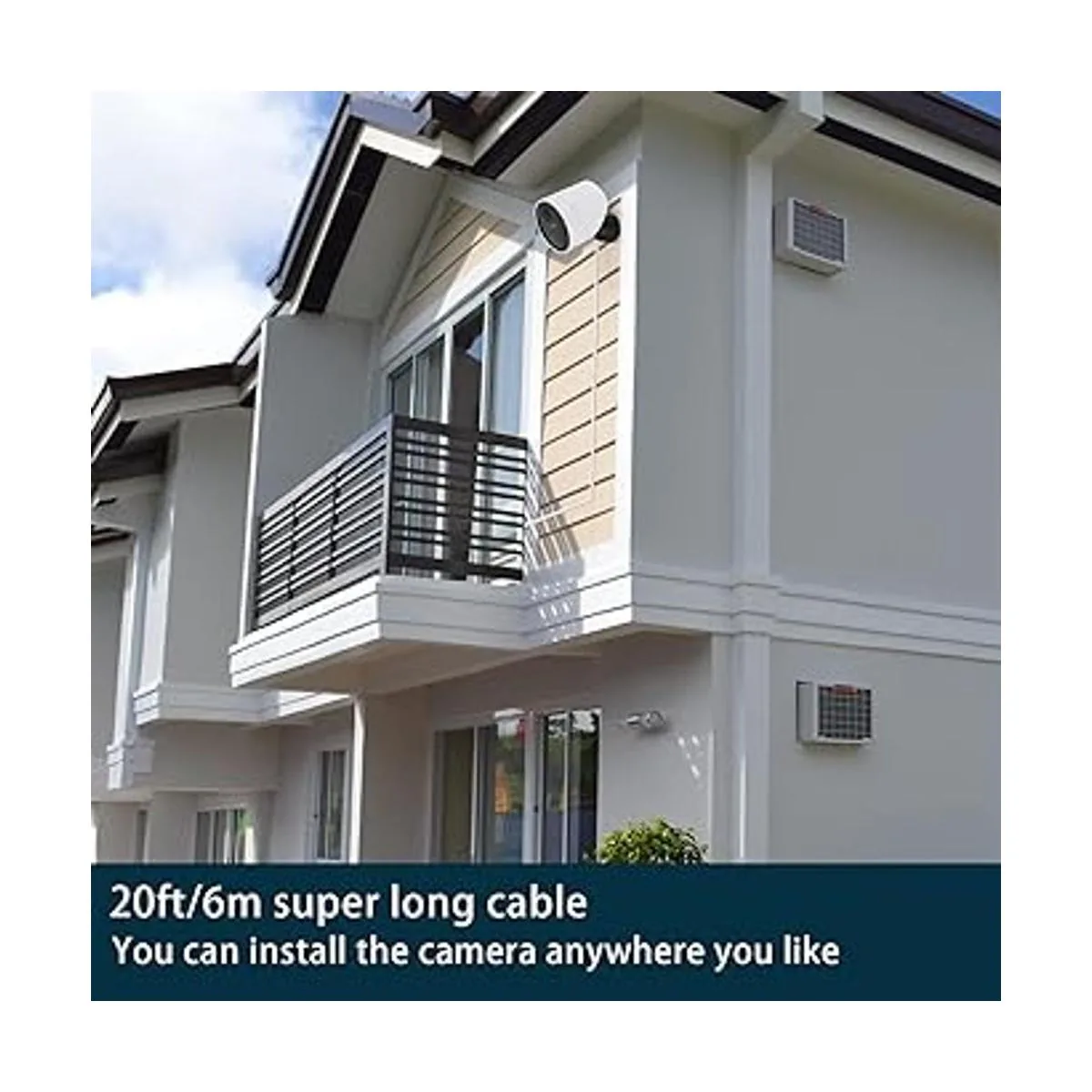 Cable plano: cable súper largo de 20 pies/19.7 ft, que te permite elegir más posiciones de instalación de la cámara, y no tienes que preocuparte de que la longitud del cable sea insuficiente para la instalación. El cable plano puede pasar a través de muchos pequeños huecos, como puertas y ventanas.