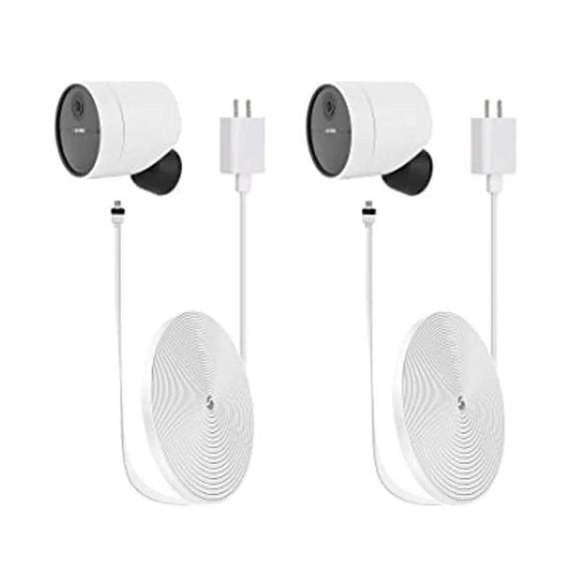 iTODOS Paquete de 2 cables de alimentación de 20 pies19.7 ft y adaptador para cámara de seguridad inalámbrica SimpliSafe para exteriores, resistente a la intemperie, cable de carga plano para cámara de exterior SimpliSafe, color blanco