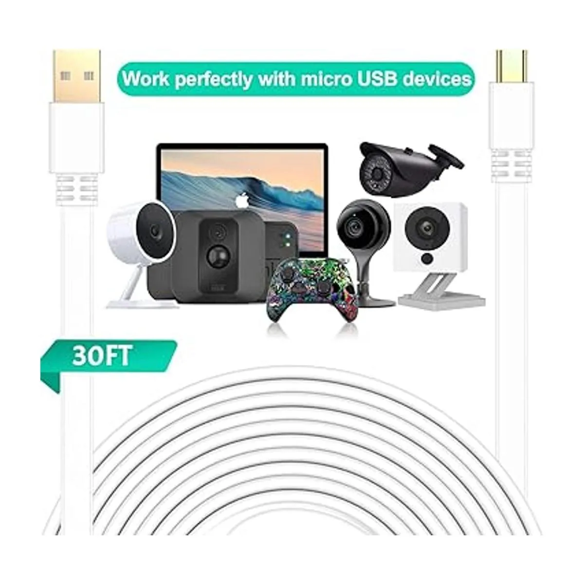 Itramax Cable de alimentación micro USB de 30 pies paquete de 2, cable de alimentación de carga micro USB, cargador para Wyze Cam V3 Pan, cámara Yi, cámara Nest, cámara Blink Mini XT XT2, Arlo Q, Zmodo, Netvue, controlador Xbox One, al aire libre, 25