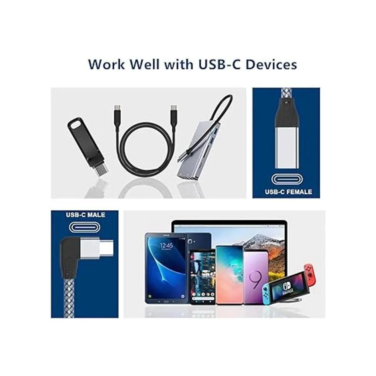 Itramax Cable de extensión USB C de ángulo recto de 0.66 pies, tipo C 3.1 Gen2 10 Gbps macho a hembra, cable Thunderbolt 3 de 90 gradosen forma de L para MacBook, Mac, iPadAir 4Mini 6, Nintendo Switch, Dell XPS 10