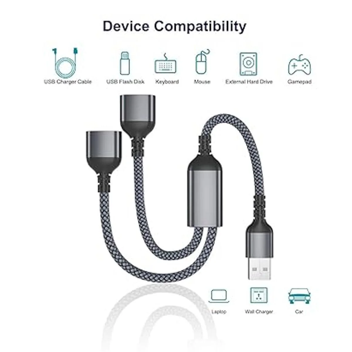 Itramax Cable divisor USB Y de 1 pie, conector de cable de extensión USB 1 macho a 2 hembras, concentrador de doble puerto USB, adaptador de alimentación de datos y cargador para Mac, automóvil, laptop, PC, Xbox One Series XS, PS4, PS5