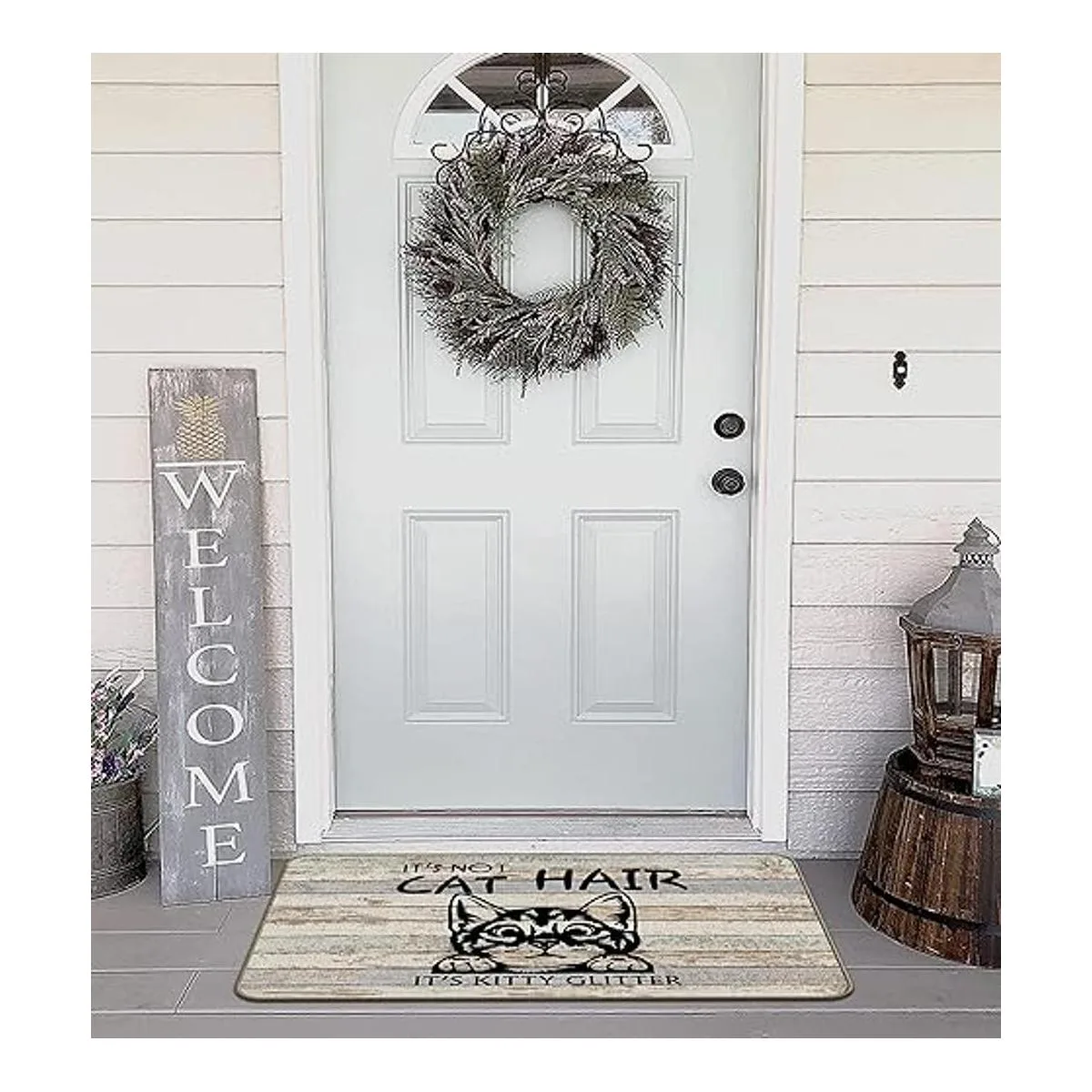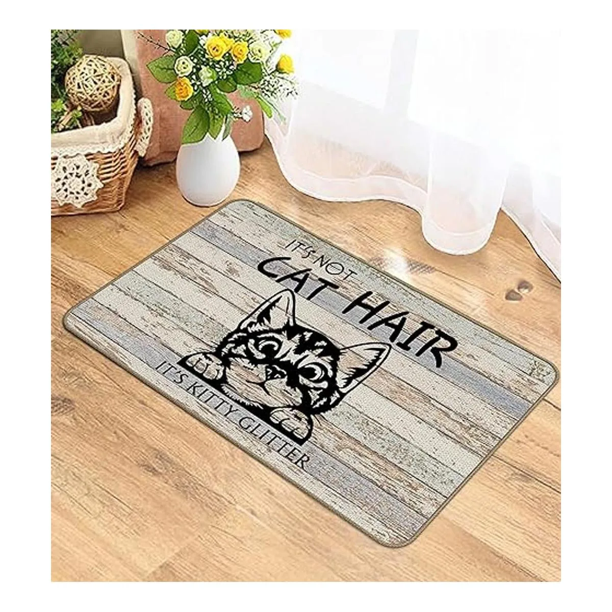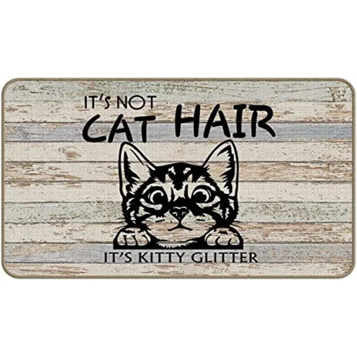 Its Not Cat Hair Its Kitty Felpudo decorativo con purpurina para interiores y exteriores, divertido tapete para puerta delantera de 18 x 30 pulgadas, para entrada de habitación temática de gato, tapete para porche delantero, felpudo divertido para decoración de gatos, regalo para amantes de los gatos