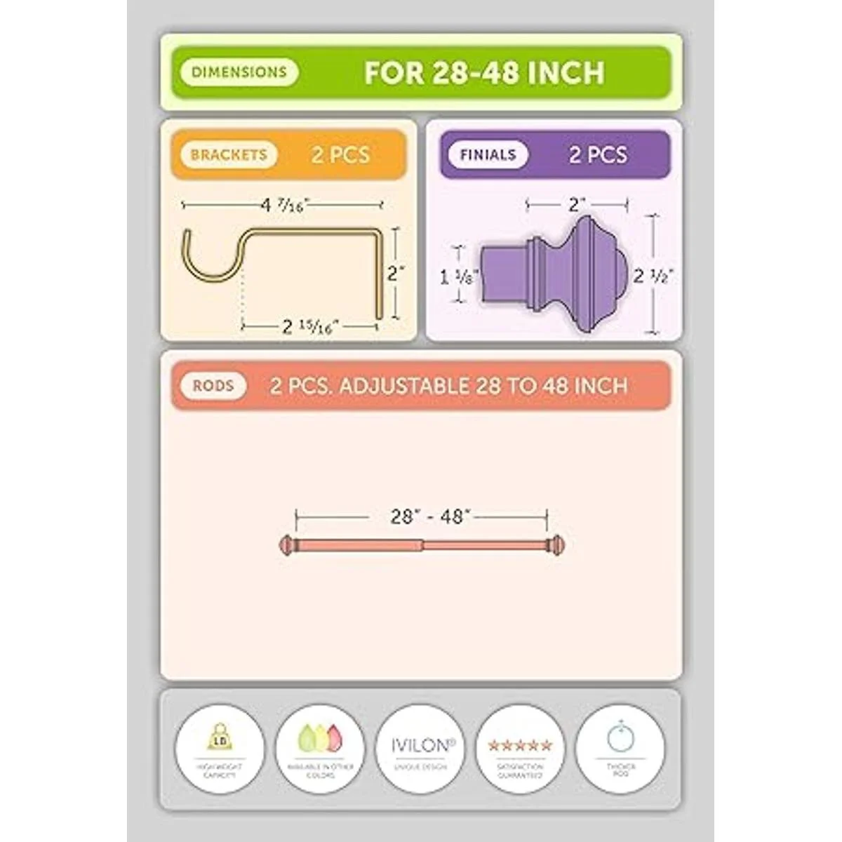 Ivilon Barra de cortina para ventana de tratamiento de cortinas, diseño cuadrado de 1 18, de 28 a 48 pulgadas, color negro