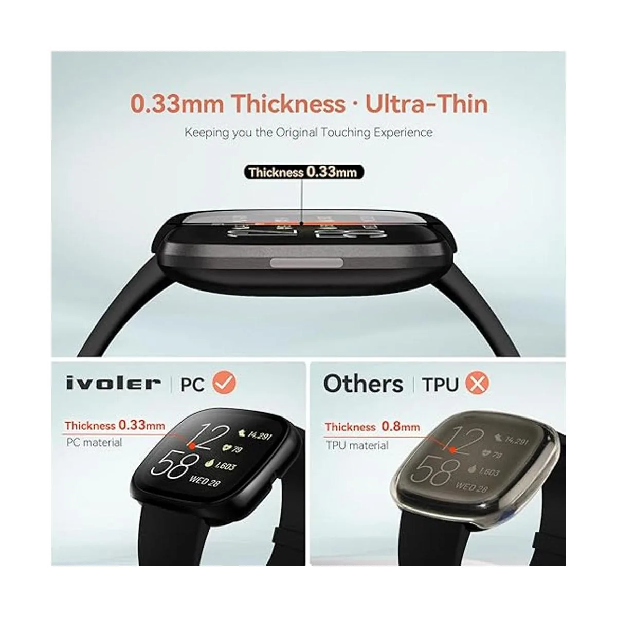 Dispositivo compatible: iVoler funda protectora de pantalla perfecta solo compatible con Fitbit Versa 2, no es compatible con Fitbit Versa 3, Sense, Versa, Versa Lite Edition y Versa Special Edition. Funda protectora con 99.99 de claridad HD y diseño de cobertura completa que protege tu reloj inteligente de arañazos y posibles daños.