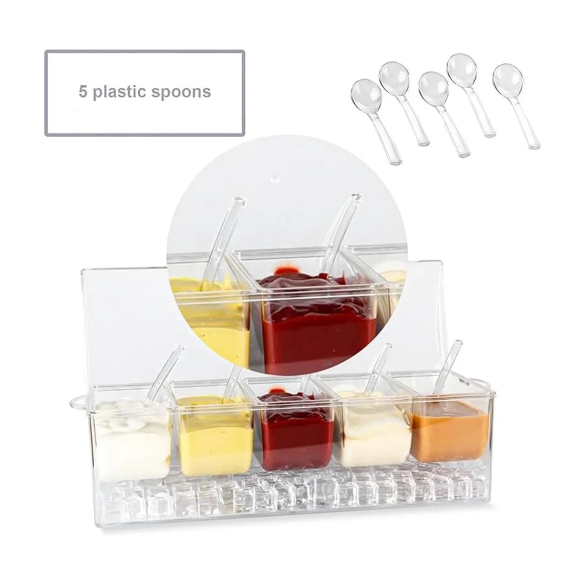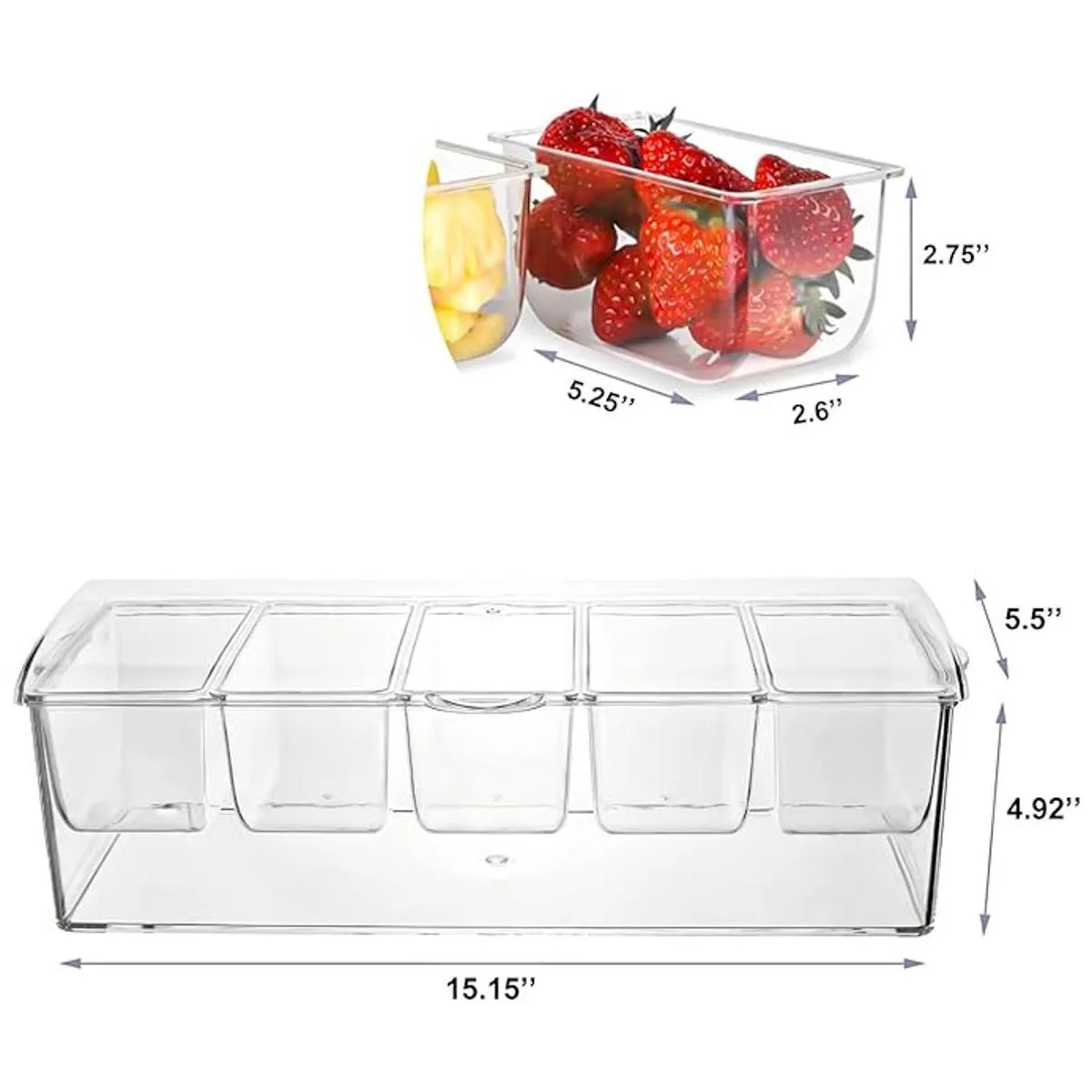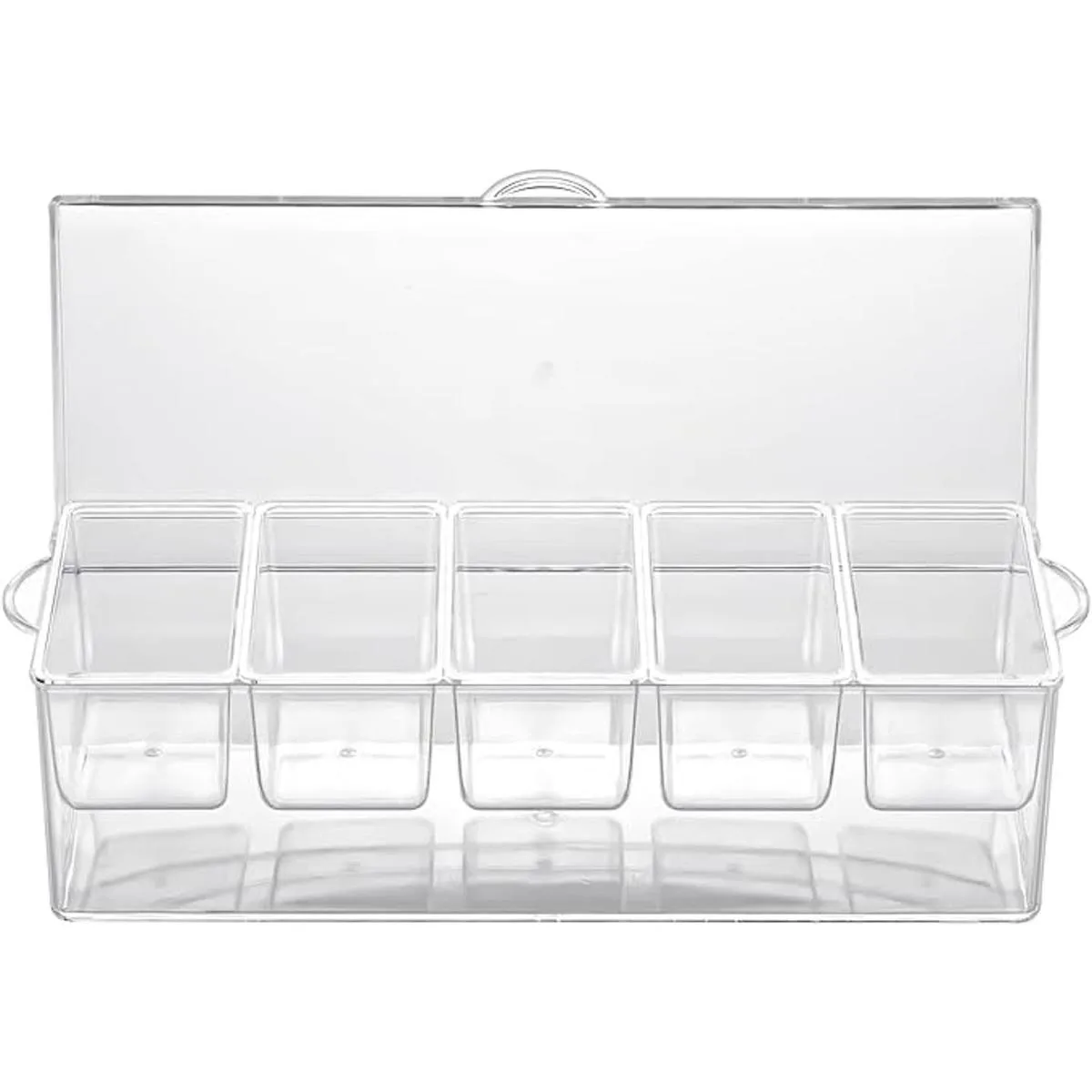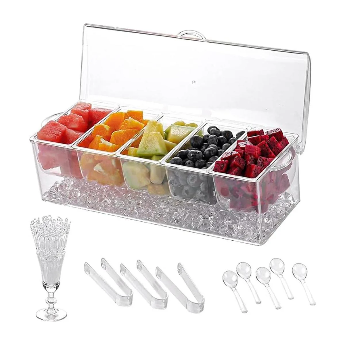 IVYHOME Servidor de condimentos refrigerado | Barra de condimentos helados transparente | Bandeja de condimentos refrigerada con tapa y 5 compartimentos extraíbles