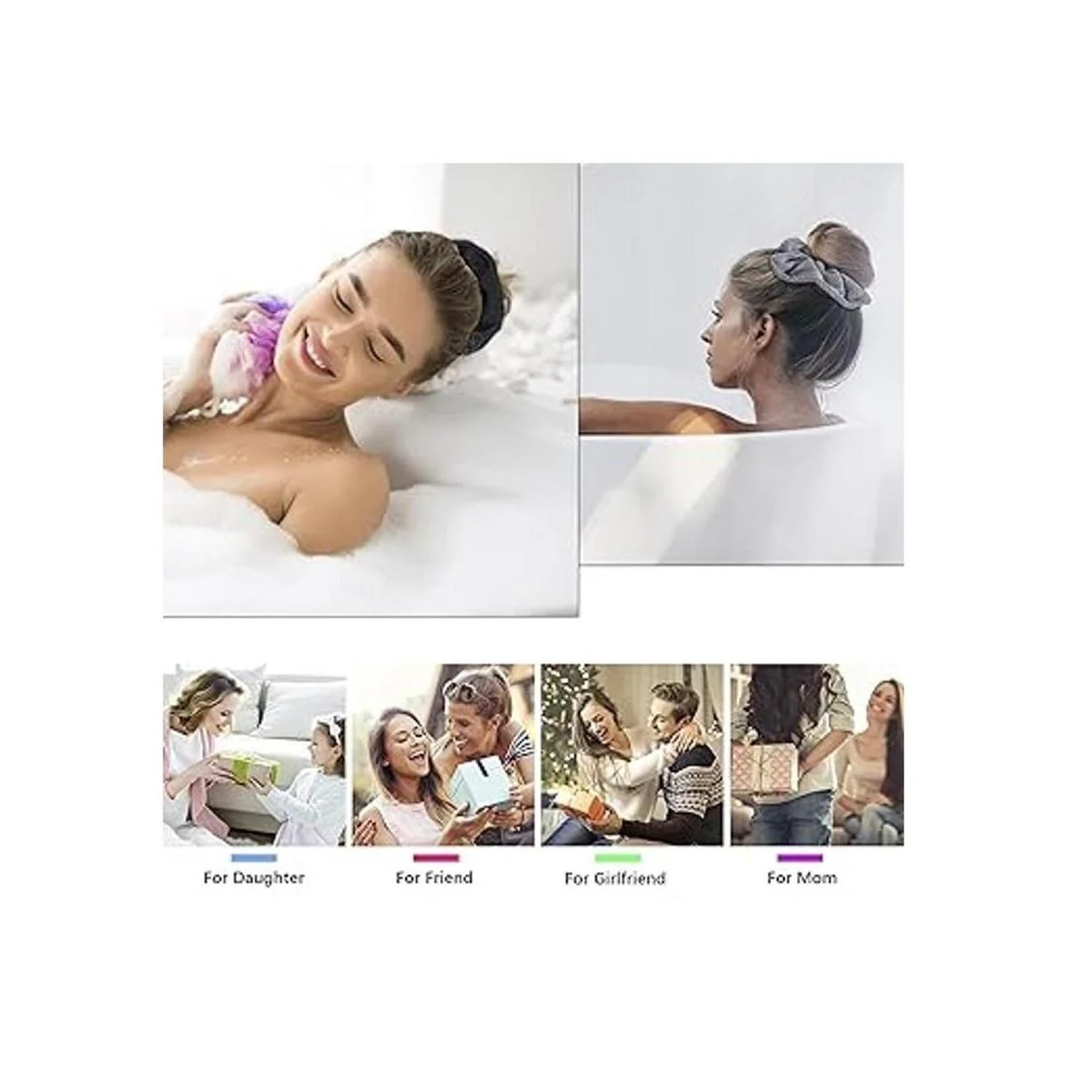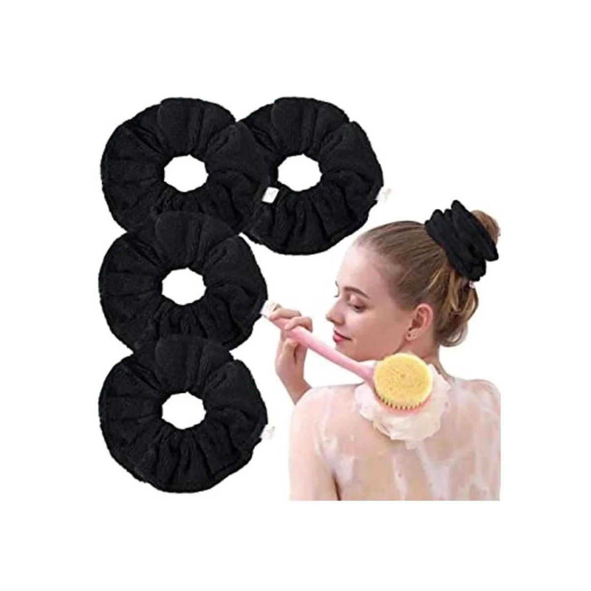 El paquete incluye: recibirás 4 toallas grandes negras para el cuidado del cabello que son mucho más grandes que las coleteros normales, y es ideal para la piscina, la playa y la ducha. Buena relación calidadprecio para todas las edades.