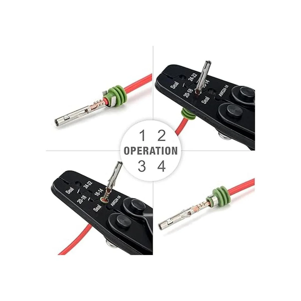 IWISS Delphi Weather Pack Crimper, herramienta de prensado Metri, engarzadora de alambre para conectores eléctricos automotrices sellados resistentes a la intemperie AWG14 a AWG24