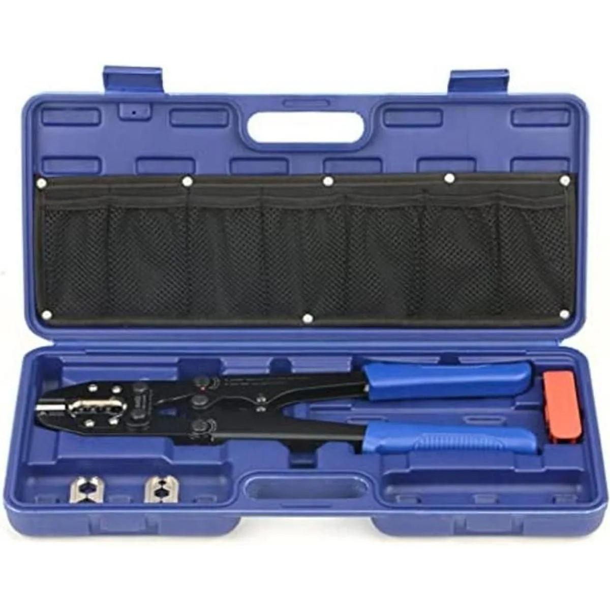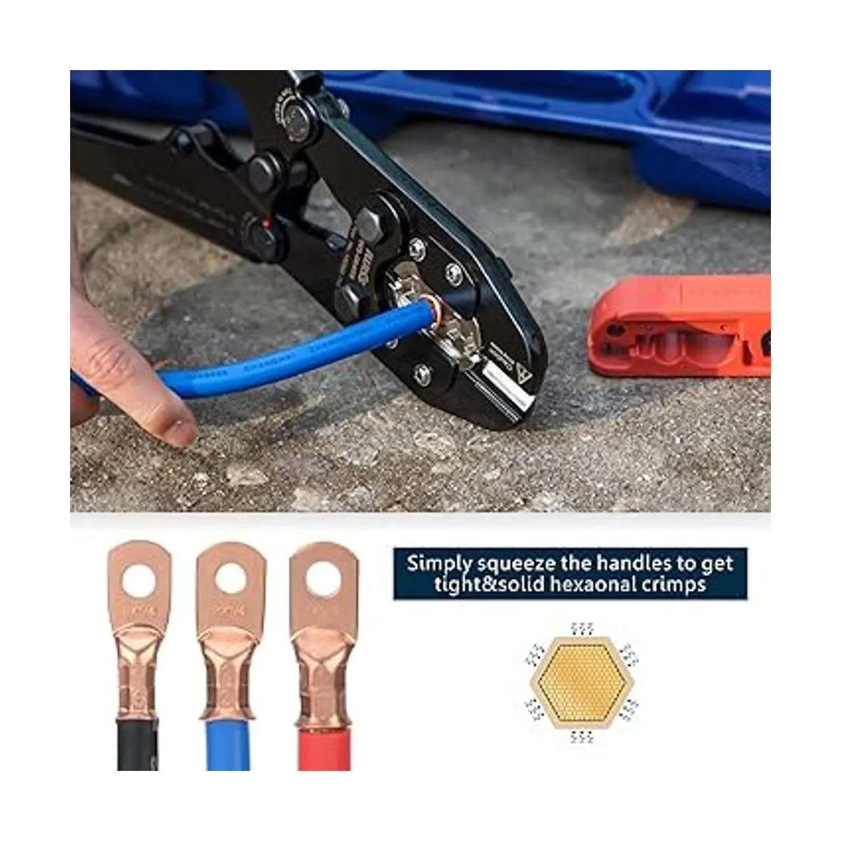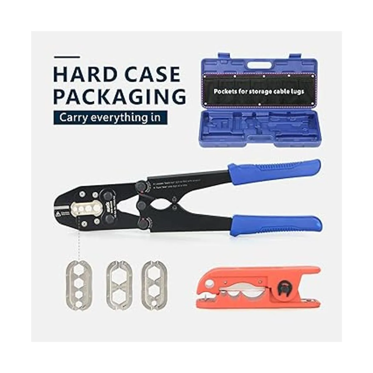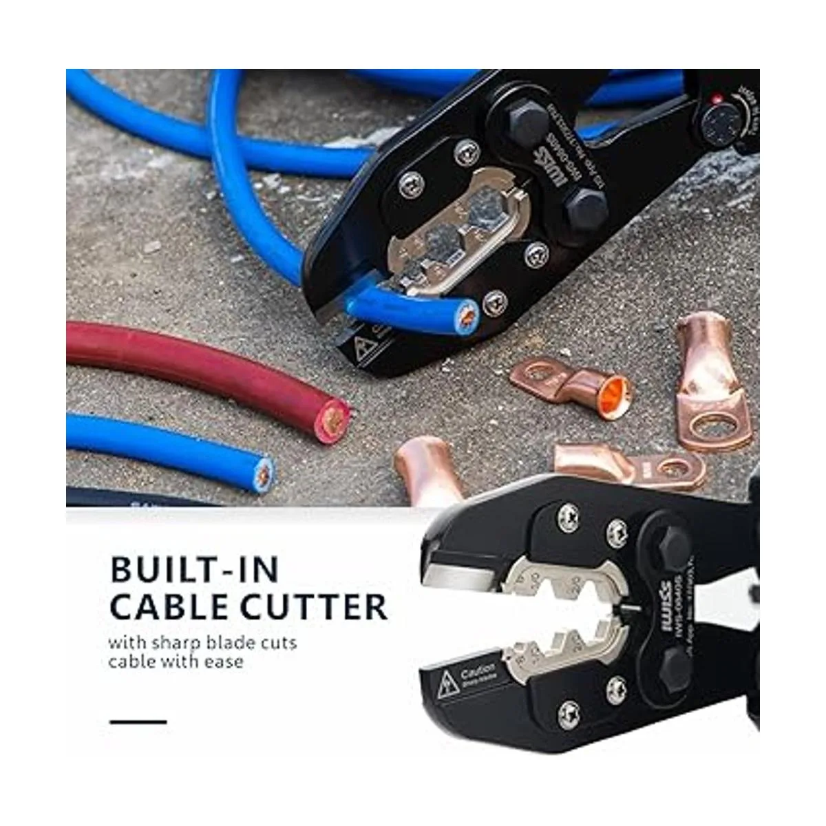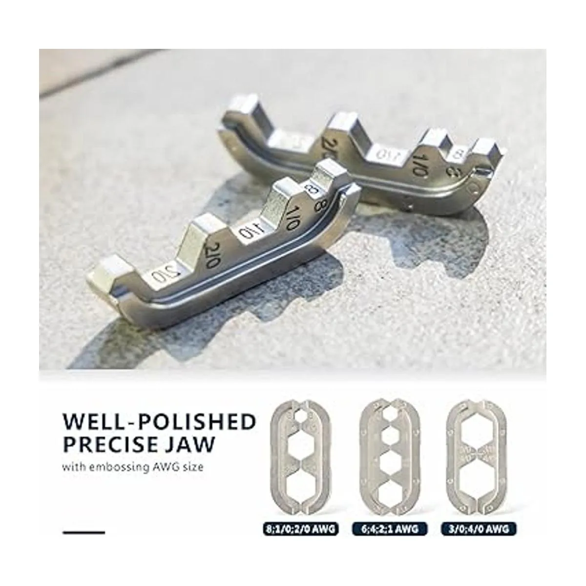 IWISS El juego de herramientas de crimpado de terminales de cable de batería incluye crimpadora de lengetas de cable, herramienta de pelado de cables y mandíbulas intercambiables para AWG 8, 6, 4, 2, 1, 10, 20, 30 y 40
