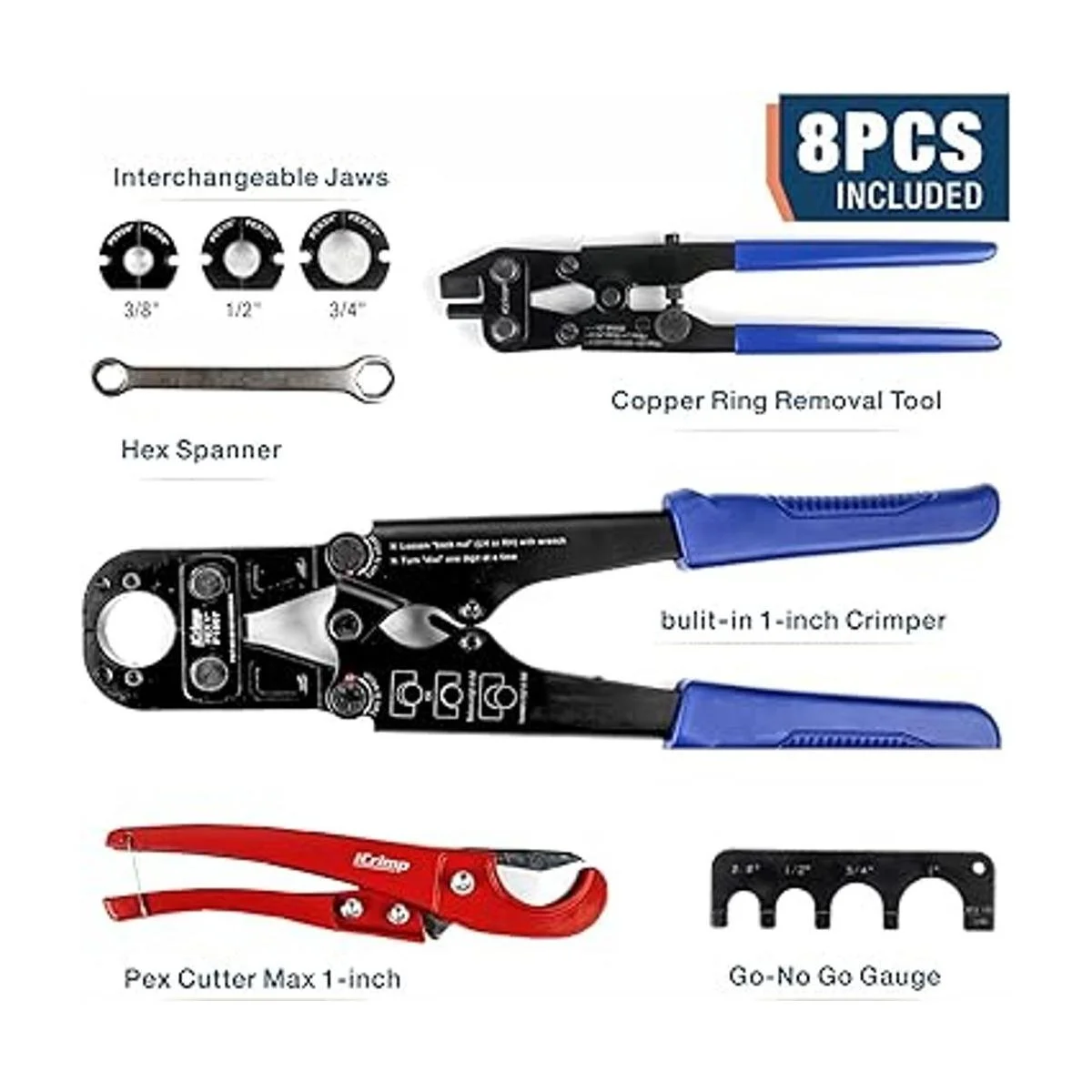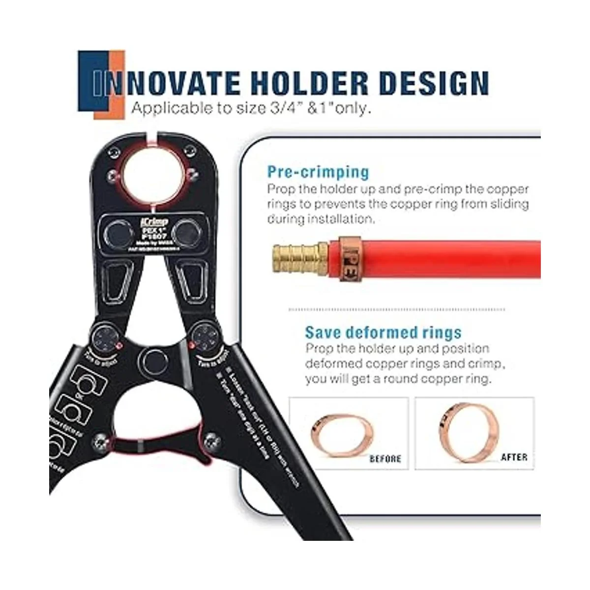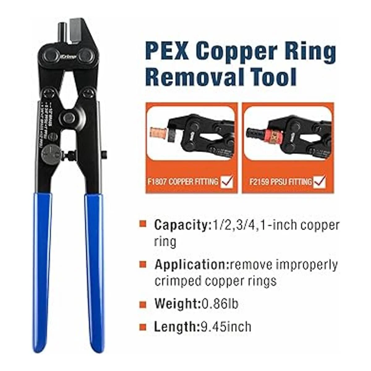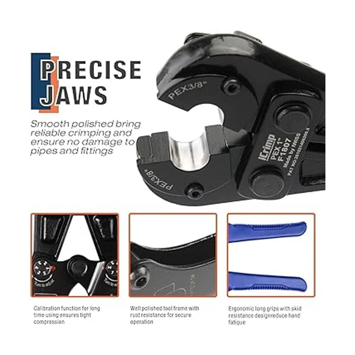 IWISS F1807 Kit de herramientas de prensado de anillo de cobre para herramientas de extracción libres de 38, 12, 34, 1 pulgada y cortador de tubos y calibre Pex, para todas las normas F1807 de EE. UU