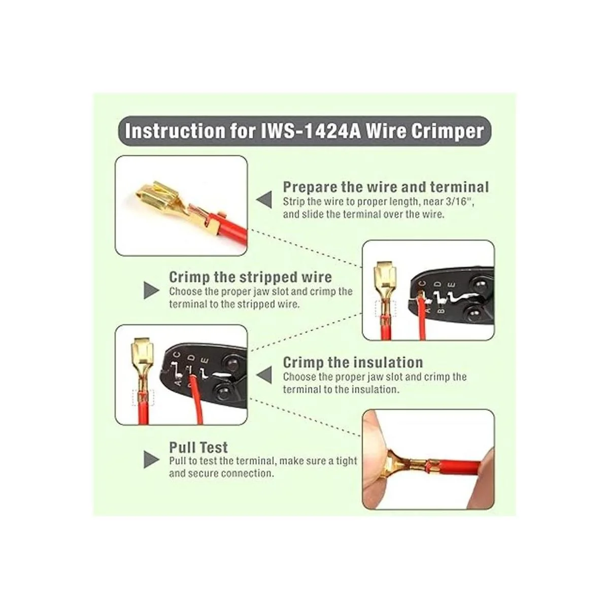 IWISS Herramienta de crimpado de terminal de barril abierto sin aislamiento, engarzadora de alambre para Molex, Delphi, AMPTyco, Harley, PCcomputadora, automotriz 2414 AWG