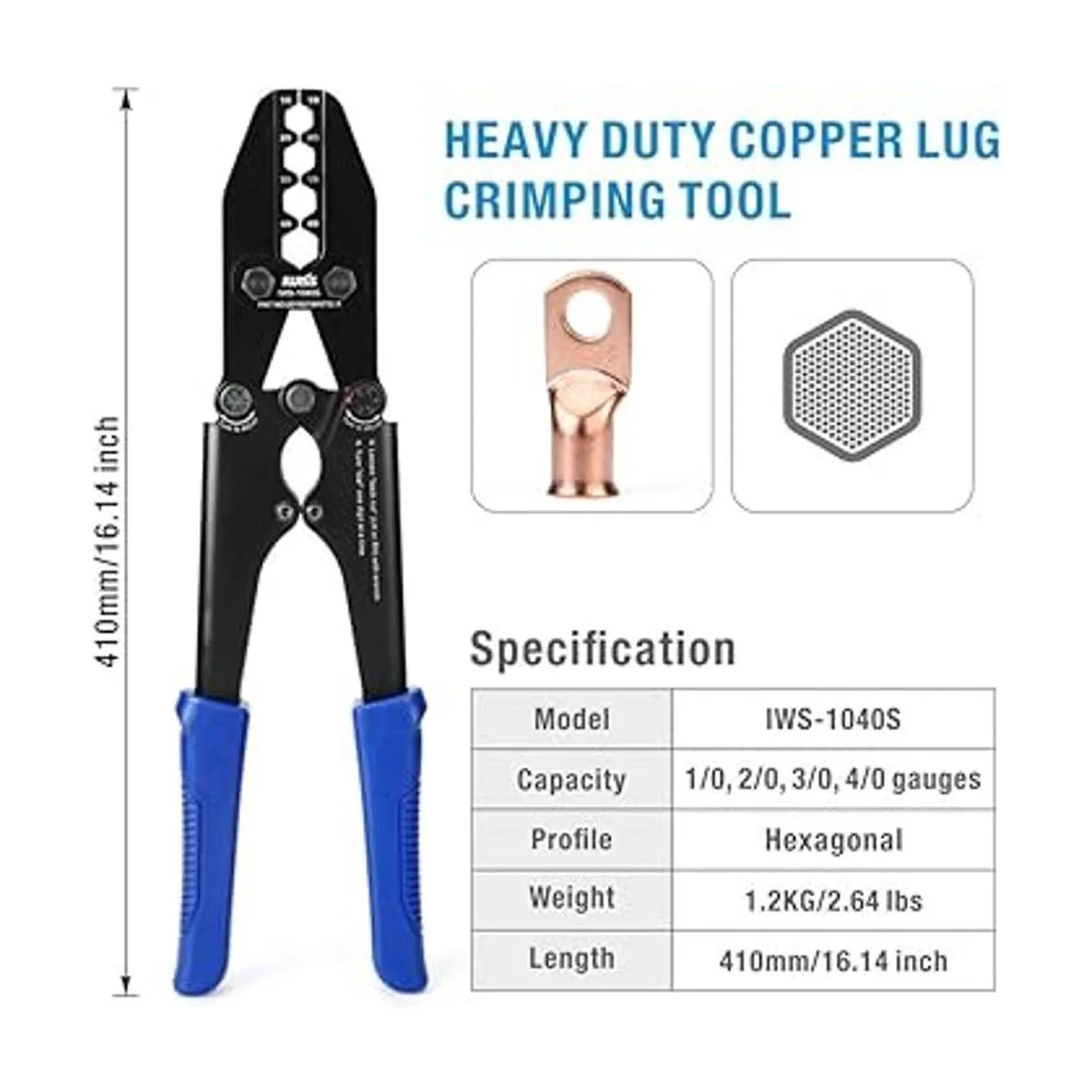 IWISS Herramienta de crimpado de terminal de cable de batería, para calibre 10, 20, 30, extremo de cable de batería, lengeta resistente, engarzadora de alambre de cobre