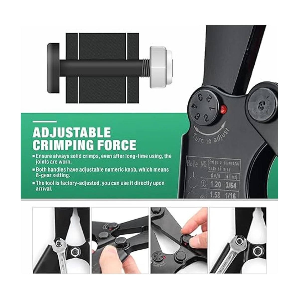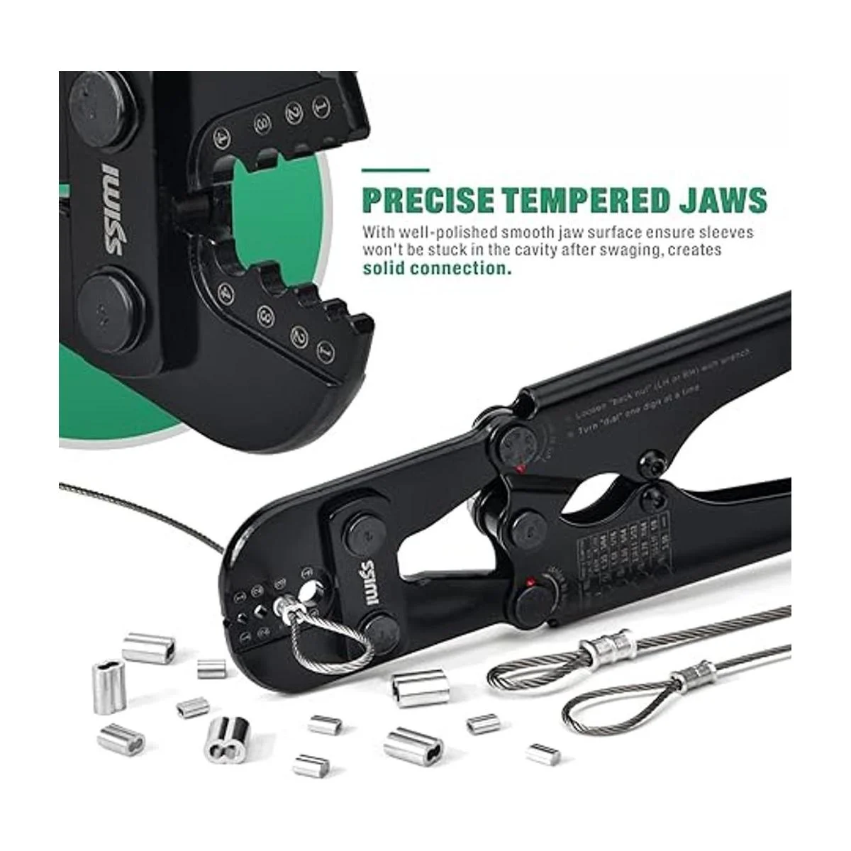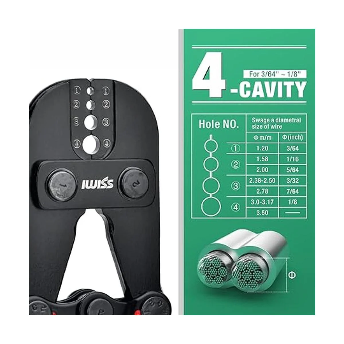 IWISS Herramienta de engarzado de cuerda de alambre para mangas ovaladas de aluminio, mangas dobles, manga de bucle de engarzado de 364 a 18 a 15 pulgadas de longitud