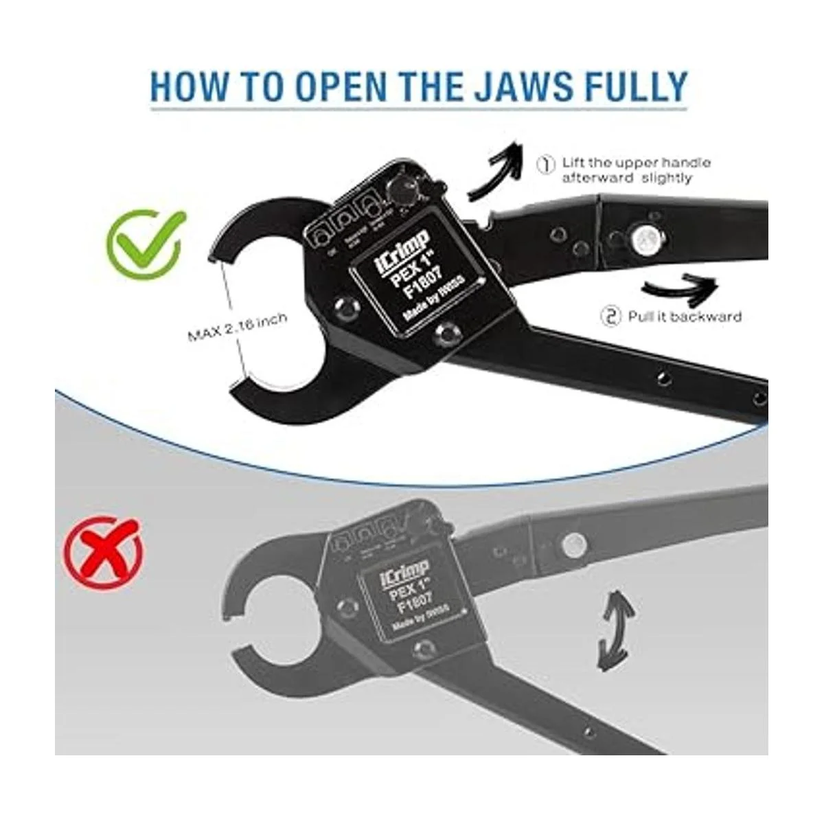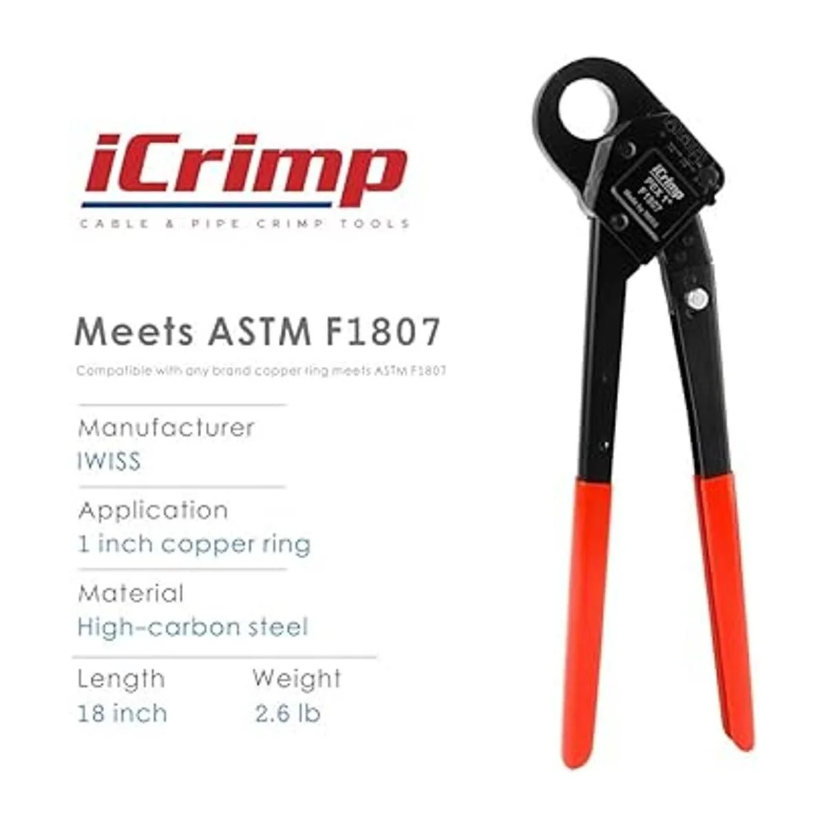 IWISS Herramienta de engaste PEX de 1 pulgada. Pinza de engaste en ángulo para anilla de cobre con calibre GONOGO entrano entra suelto