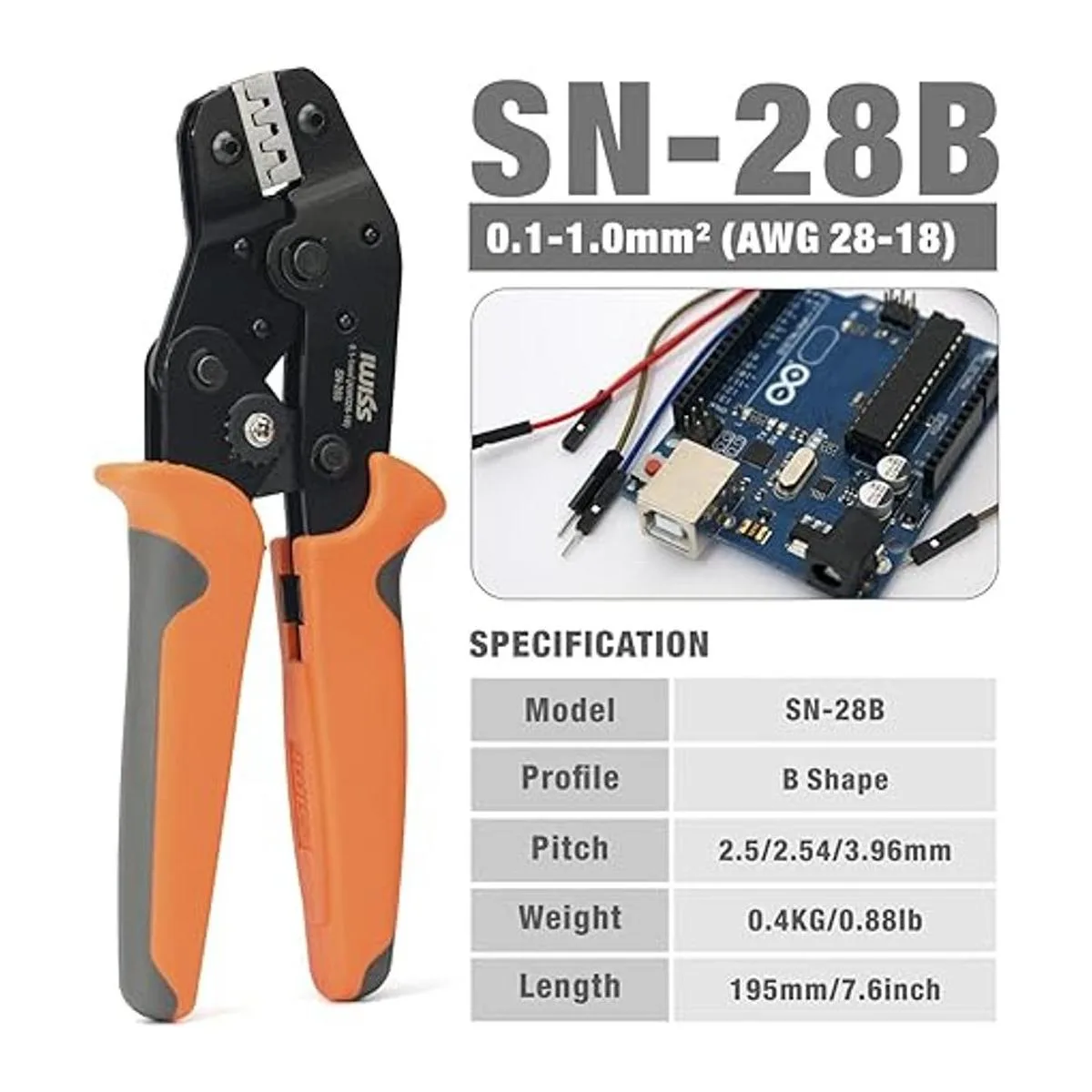 IWISS para Dupont Professional pinza de compresión para colocar clavos, con pela cables con terminales aisladas, para pins de 2.54 mm, 3.96 mm, 2818 AWG, 0.51 mm2 Herramientas de engaste.