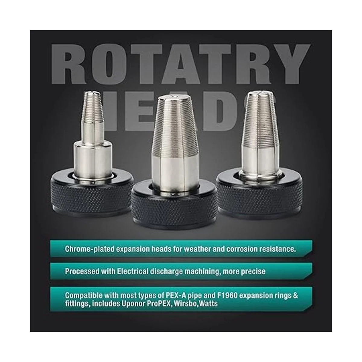 Tres cabezales de expansión están diseñados y procesados con precisión con corte electroerosión de alambre para una expansión precisa. Están hechos de acero de alta resistencia, los segmentos cromados y el anillo de óxido negro combinan durabilidad y resistencia a la intemperie.
