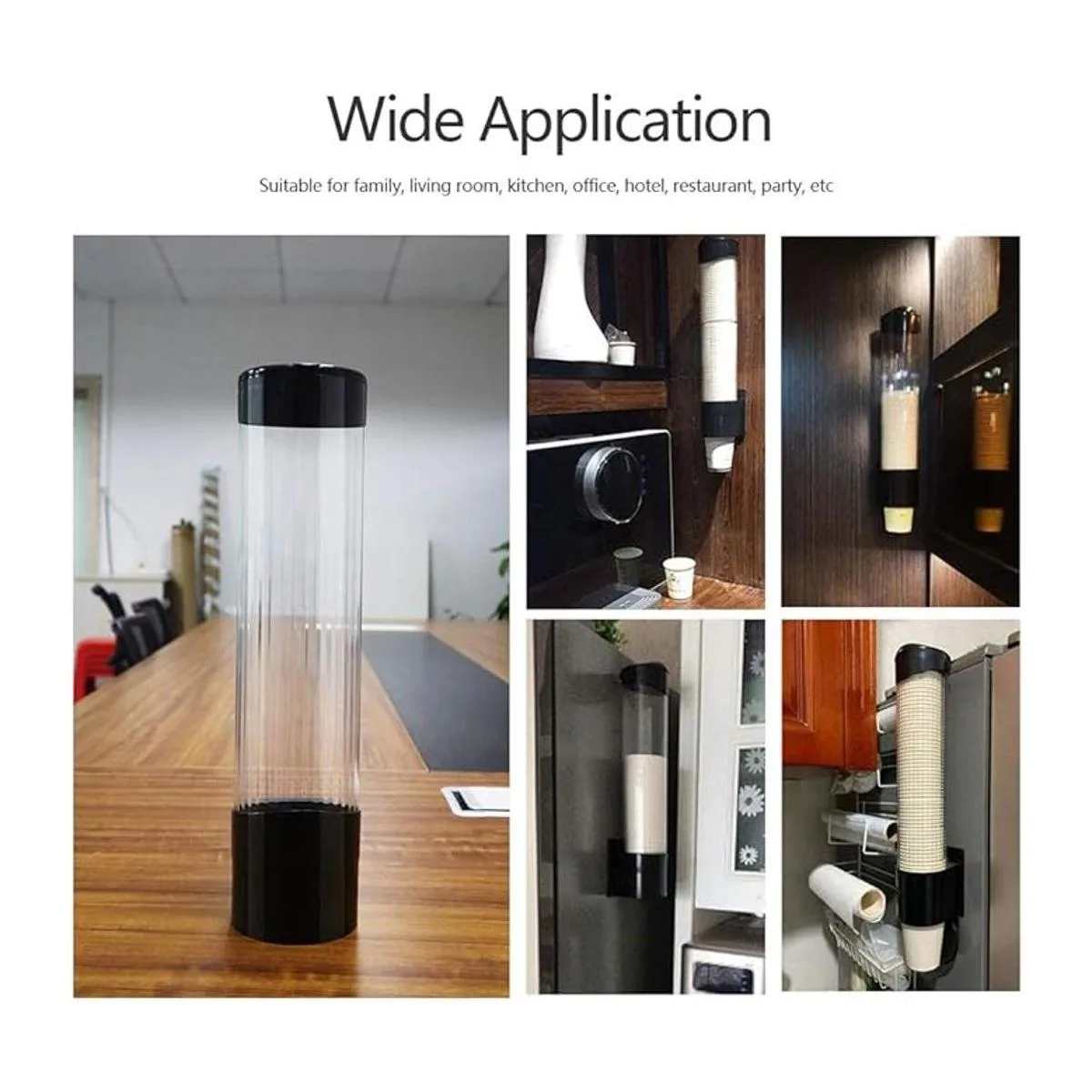 IWNTWY Dispensador de tazas de papel tipo tirador, desechable, removedor automático, para el hogar, oficina, hospital negro, mediano