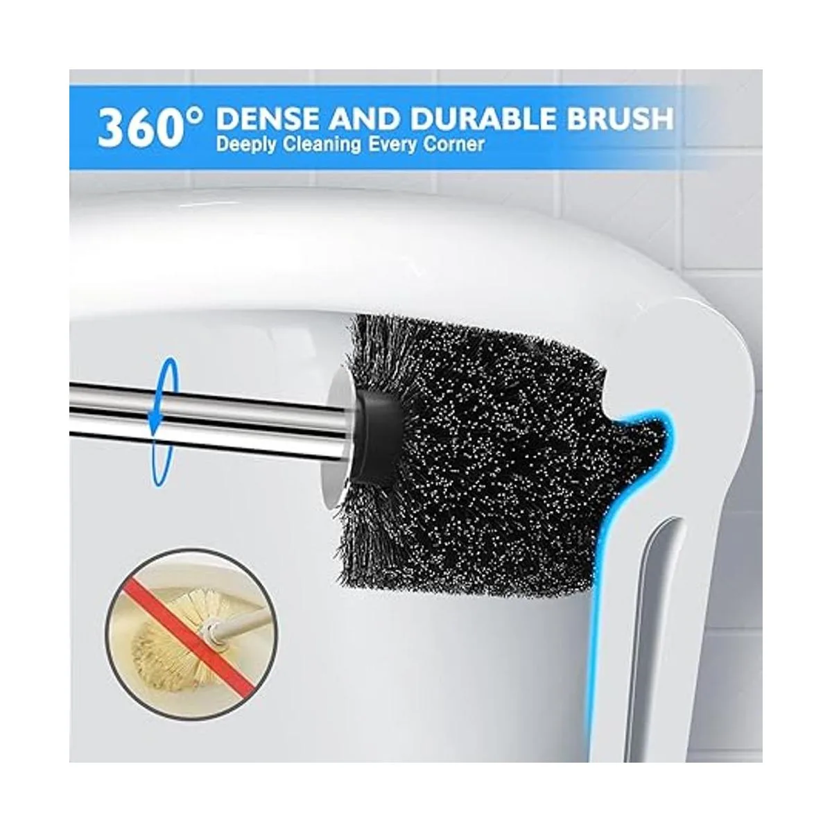 Cepillo duradero y más grande: con cabezal de cepillo de inodoro más grande hecho de cerdas suaves, flexibles, resistentes y densas, el cepillo de inodoro puede limpiar tu inodoro a 360 profundamente y fácilmente llegar a cada parte de él, como la sección debajo del borde.